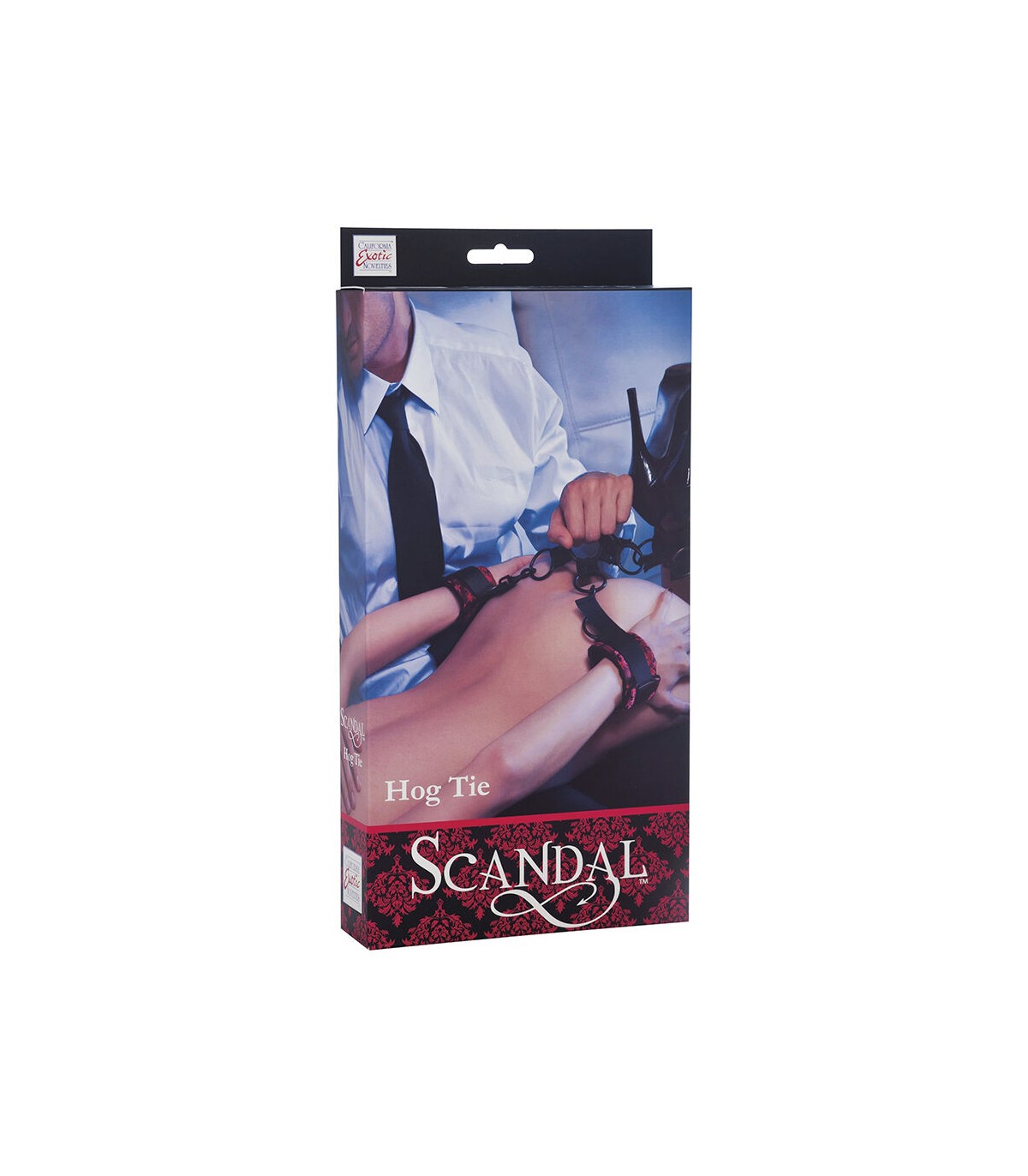 Sométete con estilo con el Scandal Hog Tie. Con cuatro esposas ajustables y suaves y un resistente conector central con anilla en O, esta herramienta de bondage es perfecta para una sujeción segura y cómoda.