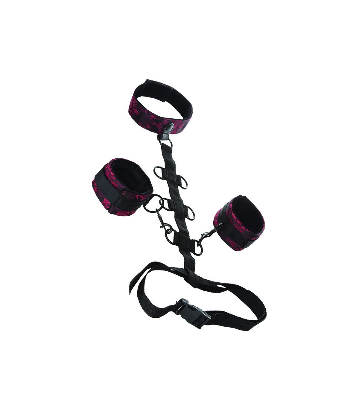 Sumérgete en la sensualidad de la esclavitud con el collar de atadura Scandal. Este impactante collar cuenta con un lujoso collar, esposas desmontables y múltiples opciones de sujeción: por delante o por detrás. Tres niveles de restricción permiten que tu dominante decida cuánta libertad disfrutarás.