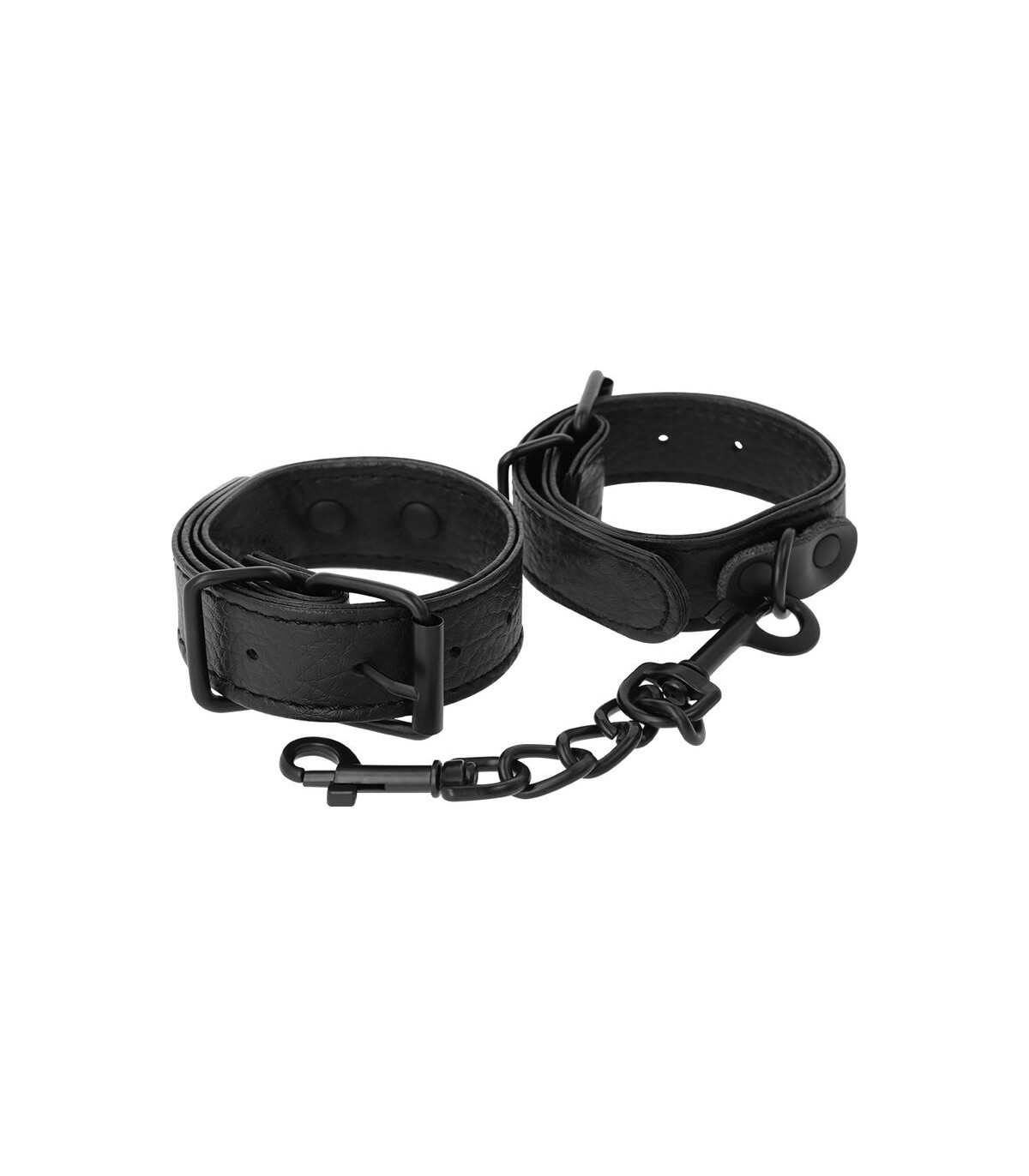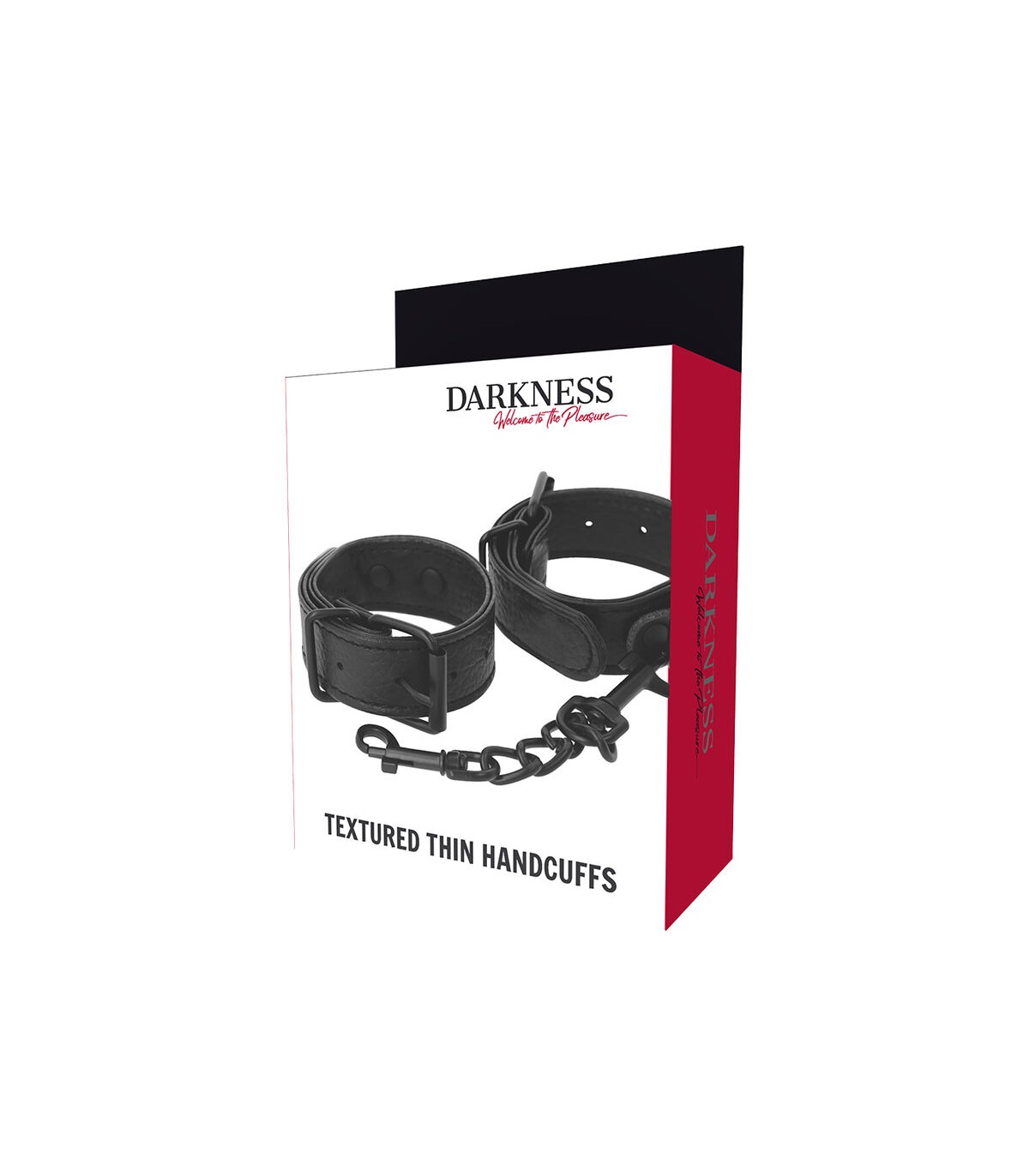 Estos puños tienen la estética elegante que anhelas. Ancho fino en color negro texturizado y terminado con una hebilla, tu sumiso no podrá escapar. El interior suave garantiza que se mantendrán cómodos sin importar cuánto tiren o cuánto tiempo juegues.
