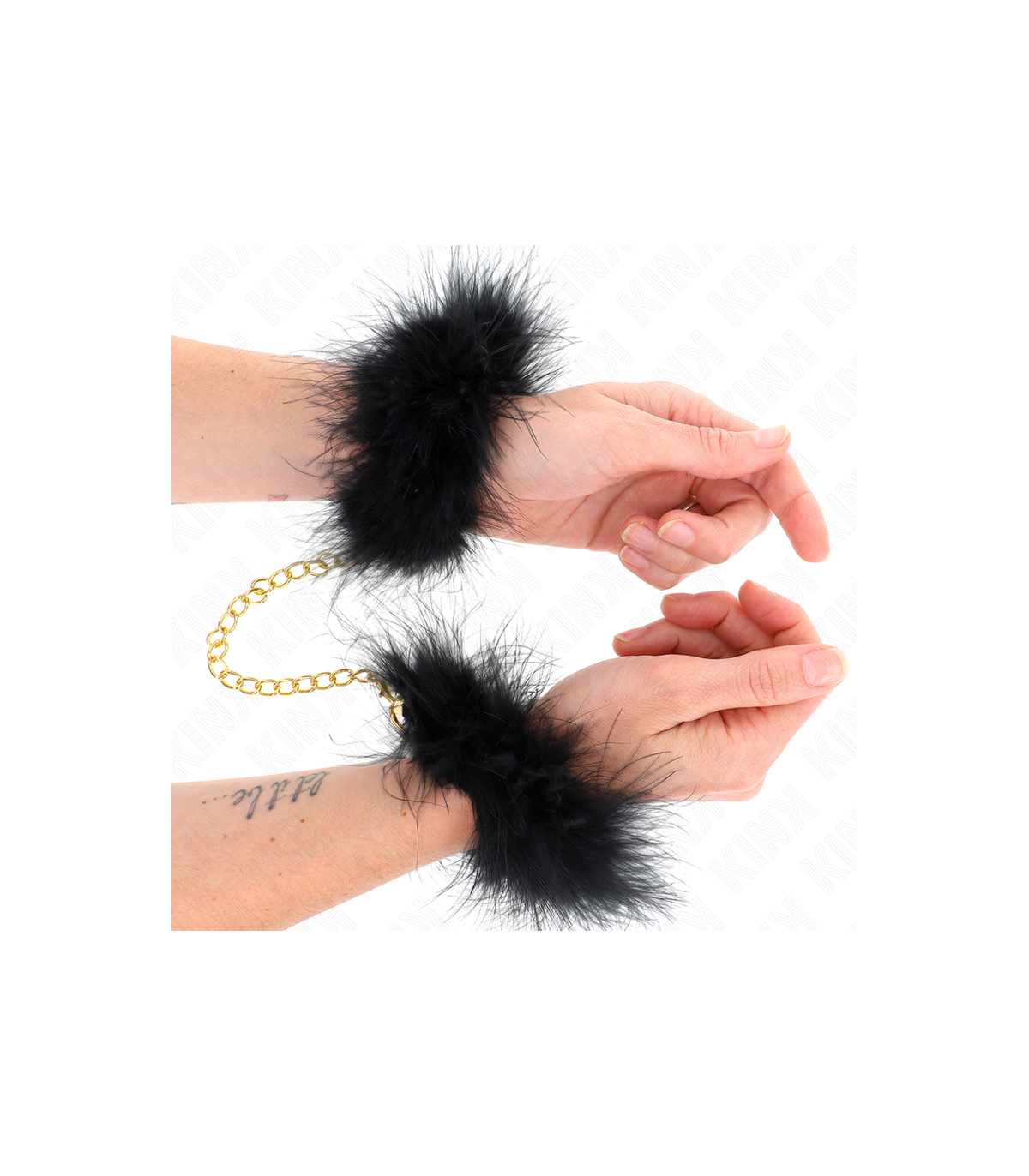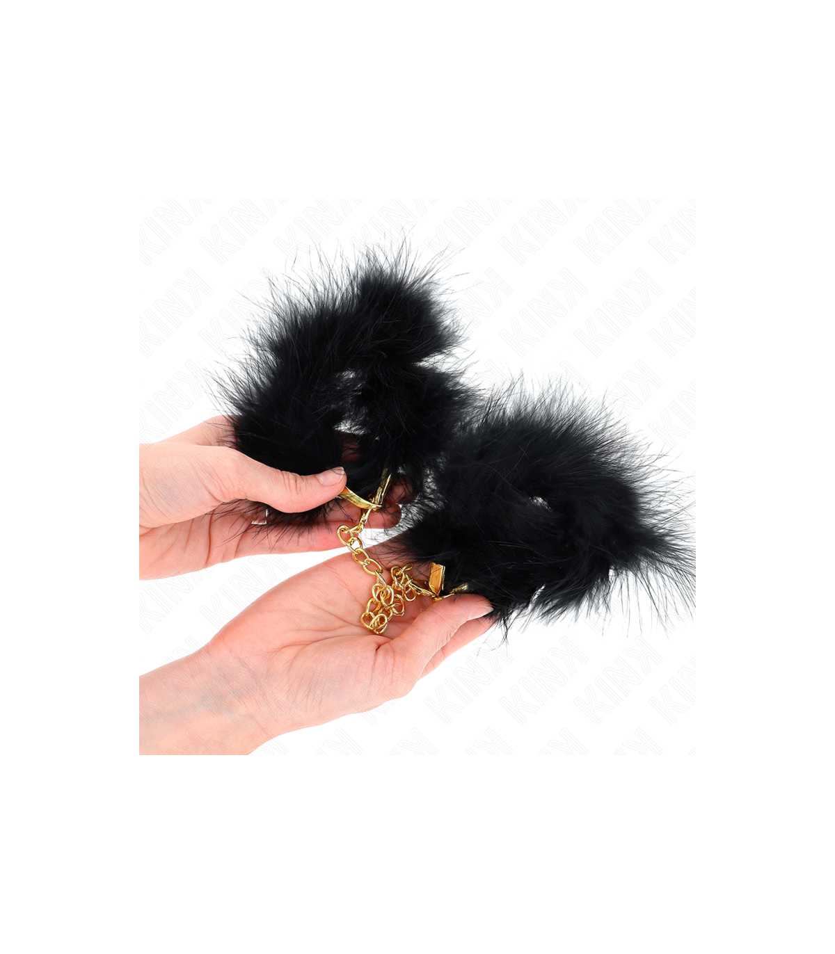KINK - ESPOSAS DE PLUMAS NEGRO CON CADENA DORADA MODELO 2