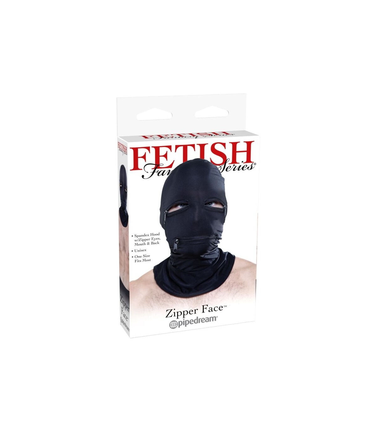 Esta capucha liviana está hecha de poliéster-spandex de alta calidad diseñada para adaptarse a la mayoría de los tamaños y permite respirar fácilmente. Las cremalleras para ojos y boca te dan control sobre lo que el sujeto puede ver o saborear.