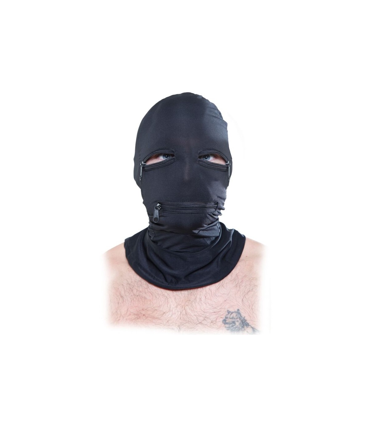 Mantenga al sujeto en silencio y obediente con esta capucha con cremallera.