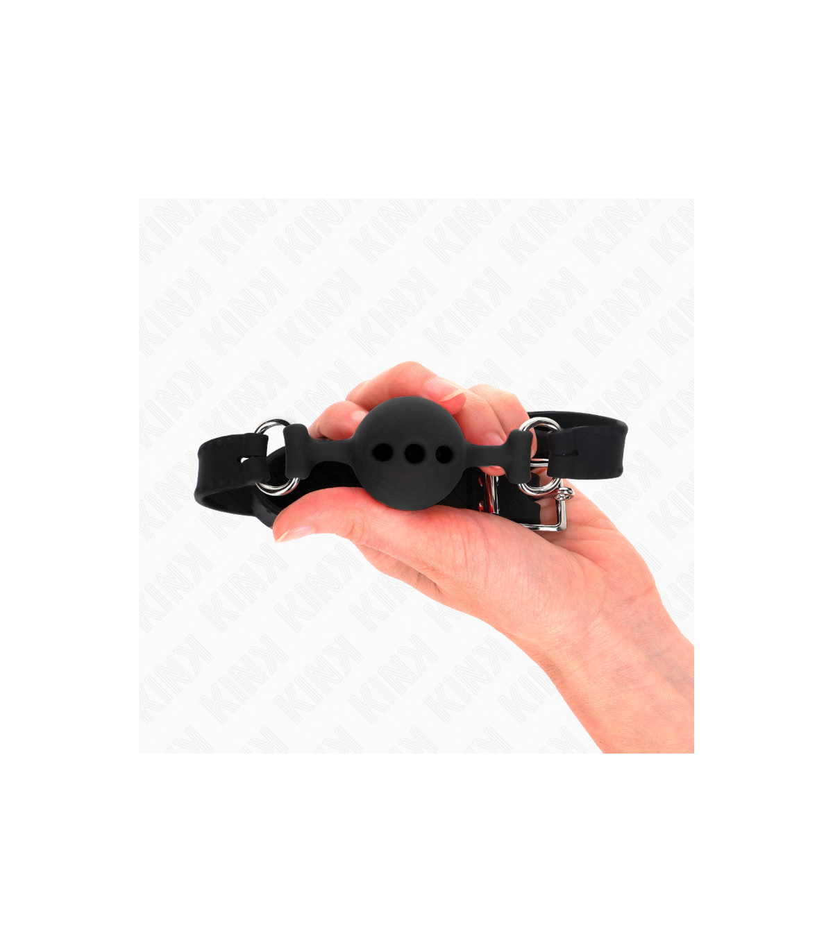 KINK - MORDAZA 55 x 2 CM DE BOLA 4 CM DE SILICONA COMPLETA TALLA S NEGRO AJUSTABLE 35-51 CM