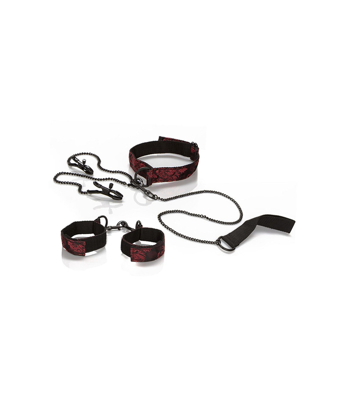 Ríndete por completo con el Kit Sumiso Scandal: un lujoso set todo en uno para explorar el control y las sensaciones. Incluye esposas ajustables, un collar de doble cara con correa, un antifaz y pinzas para pezones con suaves almohadillas para una estimulación segura de tus puntos más sensibles. Perfecto tanto para principiantes como para sumisos experimentados, este kit te invita a experimentar con la privación sensorial, la restricción y el toque estimulante. Juega con potencia y disfruta de un placer intenso, con un accesorio seductor a la vez, o con todos a la vez.