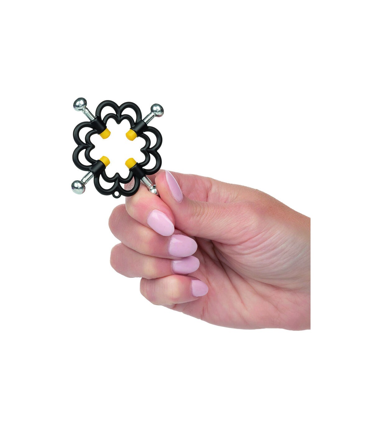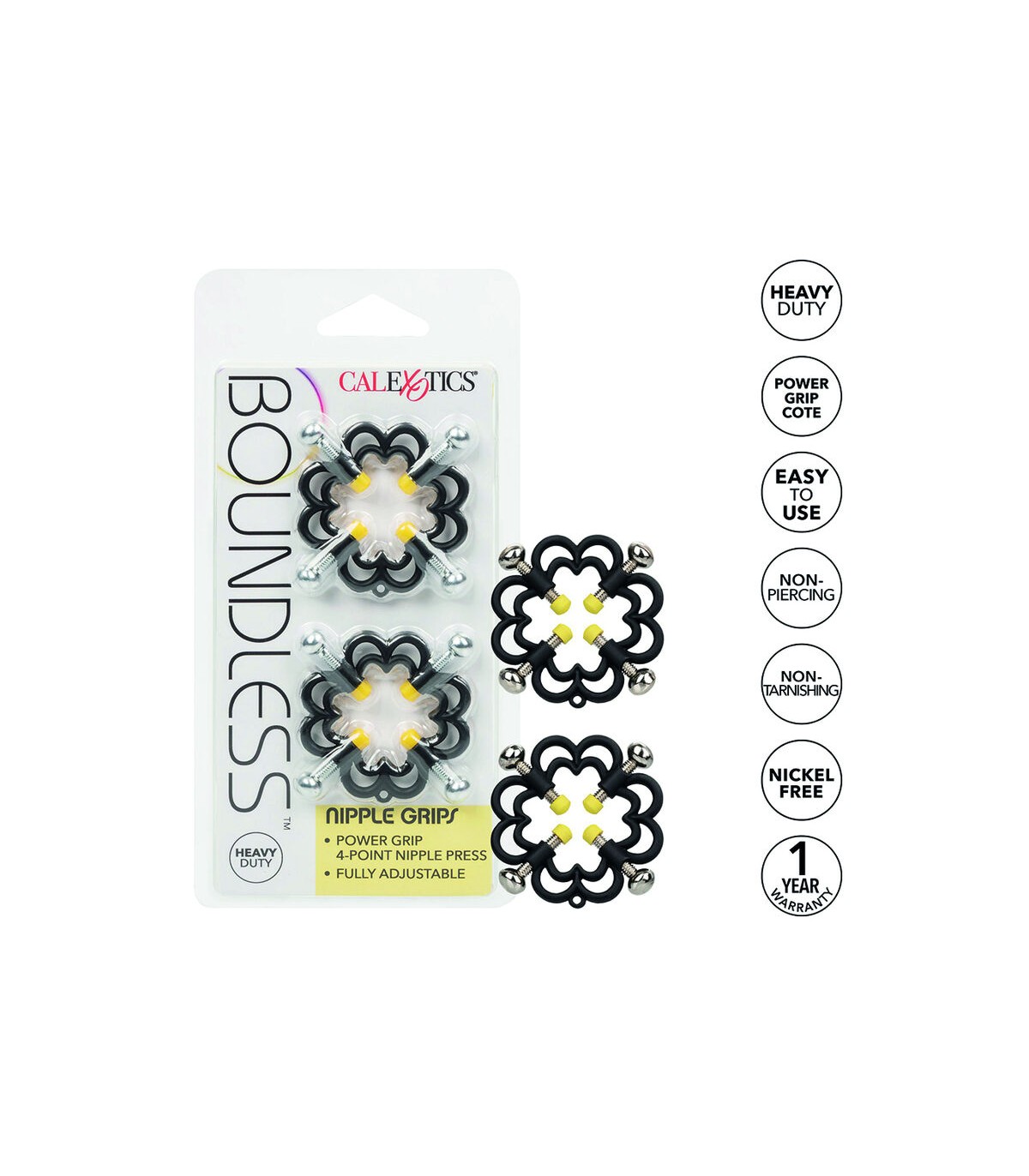 Eleva la sensación y disfruta de infinitas posibilidades de placer con las pinzas para pezones Boundless. Las abrazaderas multiusos están hechas para explorar la sensación elevada con el diseño de prensa atornillado de 4 puntos y la sensación de alta resistencia. Encuentra lo que da en el clavo con la prensa atornillada de 4 puntos totalmente ajustable, mientras que las puntas de cote con agarre eléctrico se mantienen firmes para la emoción de tu vida. Sujeta los traviesos agarres al pezón o a cualquier parte del cuerpo y disfruta de cada oleada de dolor y placer con cada tirón. La abrazadera de burla tiene 4 puntos de tensión totalmente ajustables para estimular cualquier parte de su cuerpo para provocar bromas. A medida que la tensión se tensa, el hormigueo se intensifica con cada giro de tuerca para obtener lo último en juguetes de estimulación del pezón. Estos teasers de pezones fáciles de usar son ideales para todos.