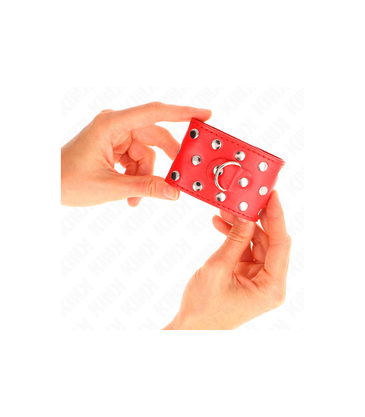 KINK - MUÑEQUERAS CON CIERRE A PRESIÓN LLENO DE TACHUELAS AJUSTABLE ROJO 19-24 CM X 5.5 CM