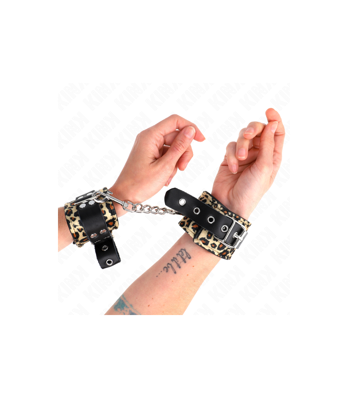 KINK - MUÑEQUERAS DE CUERO ESTILO LEOPARDO AJUSTABLE 18-29 CM X 5.5 CM
