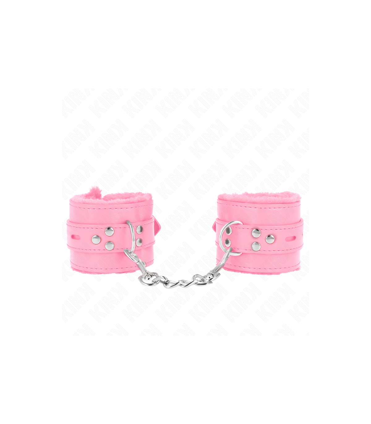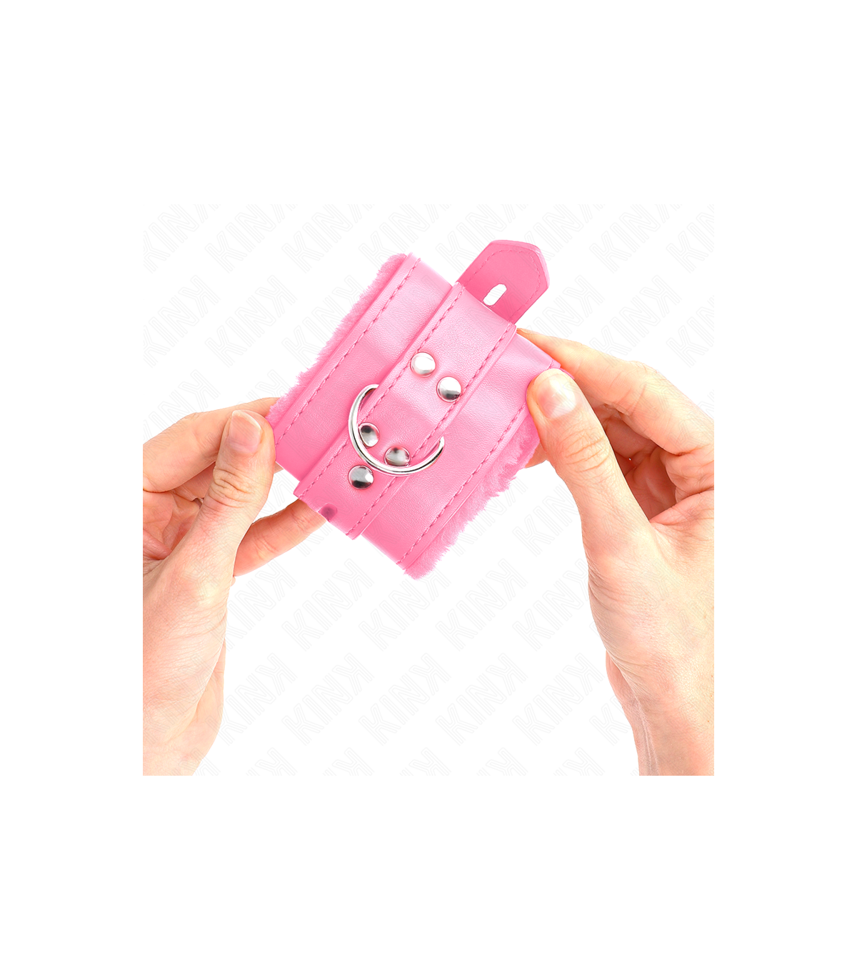 KINK - MUÑEQUERAS FORRADAS CON AGUJEROS CUADRADOS ROSA Y CORREA ROSA AJUSTABLE 17-29 CM X 6 CM