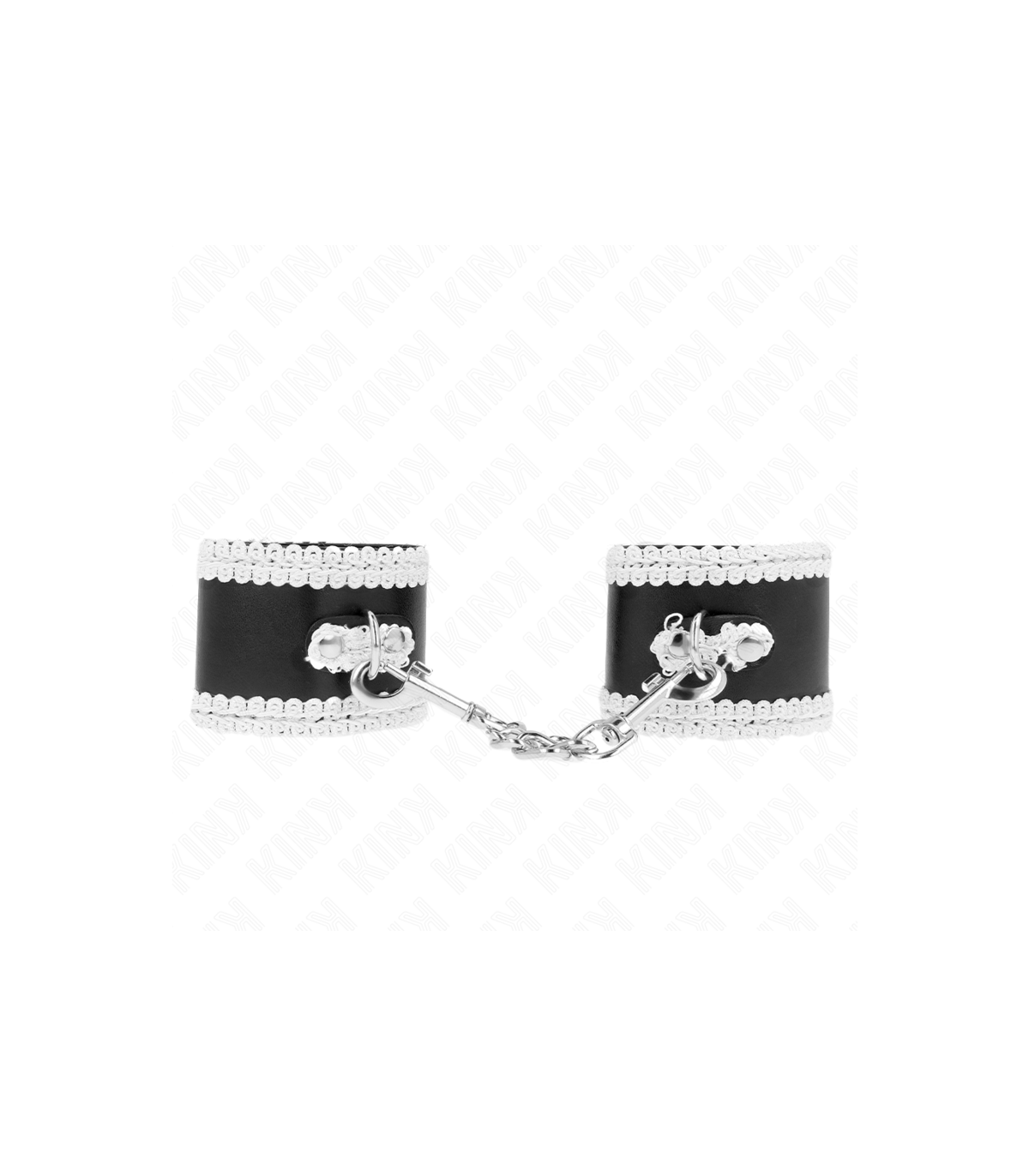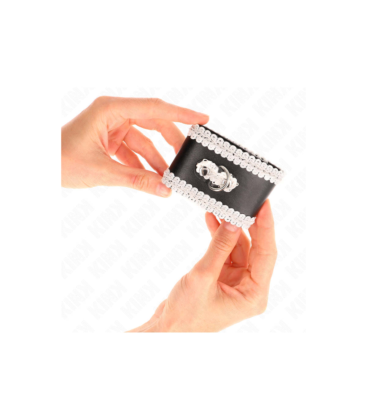 KINK - MUÑEQUERAS NEGRO CON ENCAJE DECORATIVO BLANCO AJUSTABLE 20-23 CM X 5.5 CM