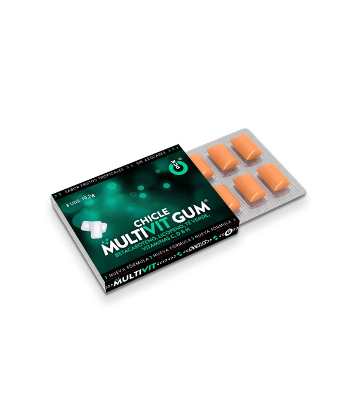 Este complemento alimenticio en formato chicle está indicado para ayudar al cuerpo a resistir las agresiones externas. Su fórmula, compuesta por 8 vitaminas y Cromo, contribuye al funcionamiento normal del sistema inmunitario y ayuda a reforzarlo frente al daño oxidativo. Con un refrescante sabor tropical, es práctico, ligero y no necesita agua ni digestión para que sus activos se absorban rápidamente a través de la mucosa bucal.