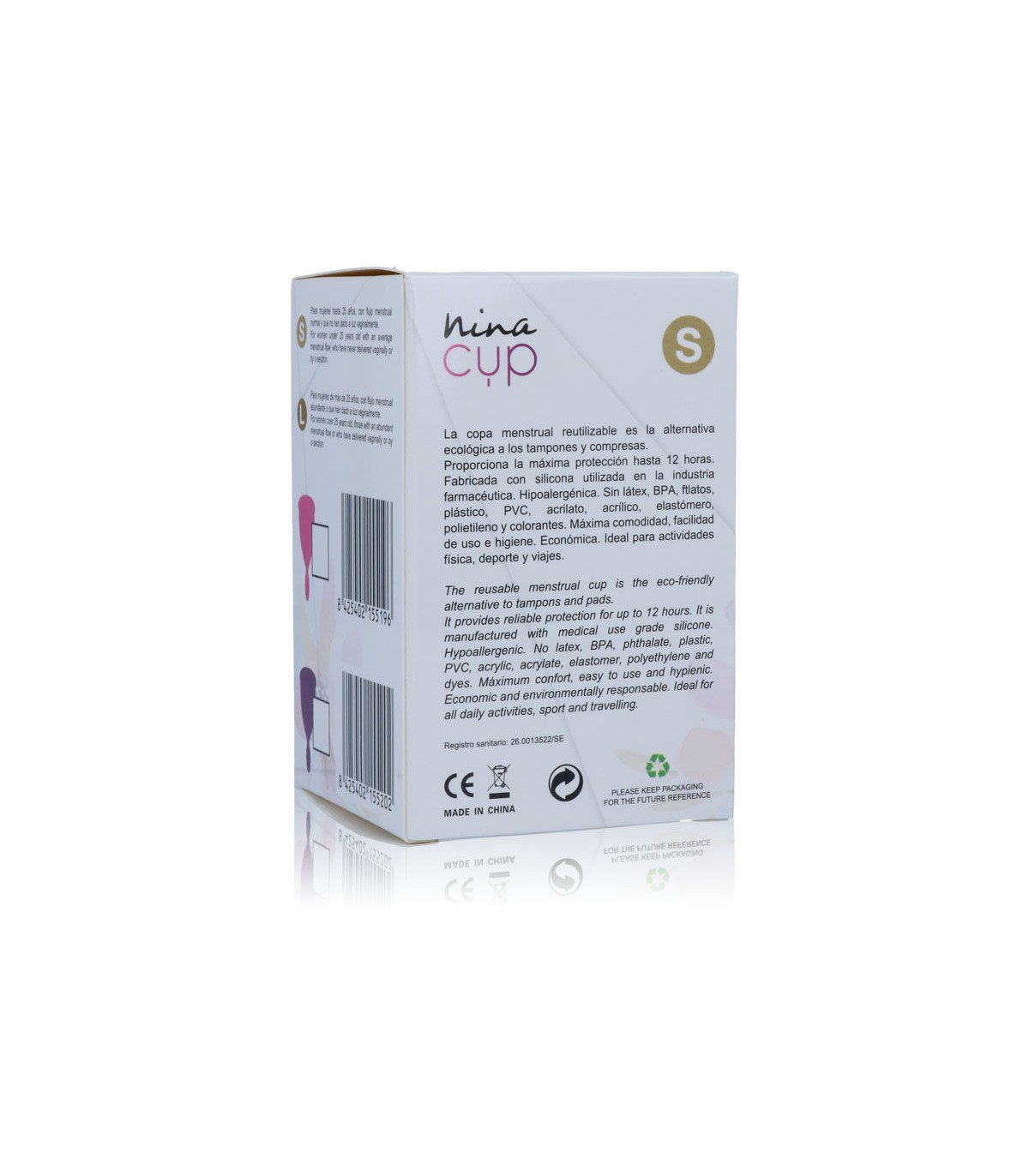 NINACUP es tu copa menstrual. Innovadora, cómoda y ecológica, es la solución ideal para tu higiene íntima. Elaborada en silicona 100% Silicona grado medico sin phalatos y su tolerancia es óptima, permitiendo una utilización prolongada hasta 12 horas.