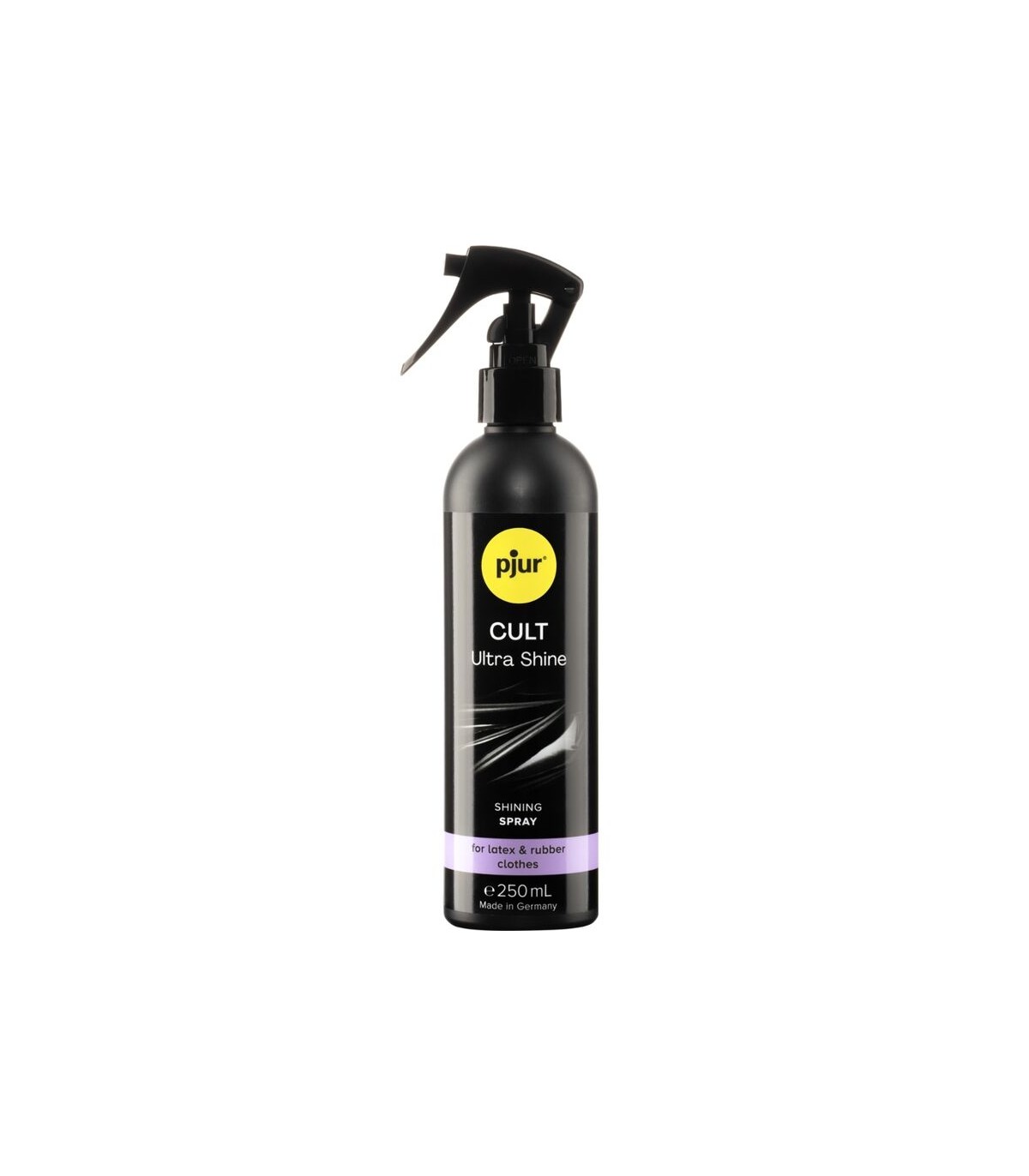 La ropa de goma y látex debe garantizar una cosa por encima de todo: brillar, es decir, estar en el centro de atención. Por lo tanto, además de pjur CULT, que se utiliza como una ayuda para ponerse ropa de caucho y látex, también hay pjur CULT ULTRA SHINE. Además de dar un brillo ultra, como el nombre lo indica, este producto protege y trata el material. La fórmula es duradera y resistente a la suciedad, no pegajosa y no deja manchas.