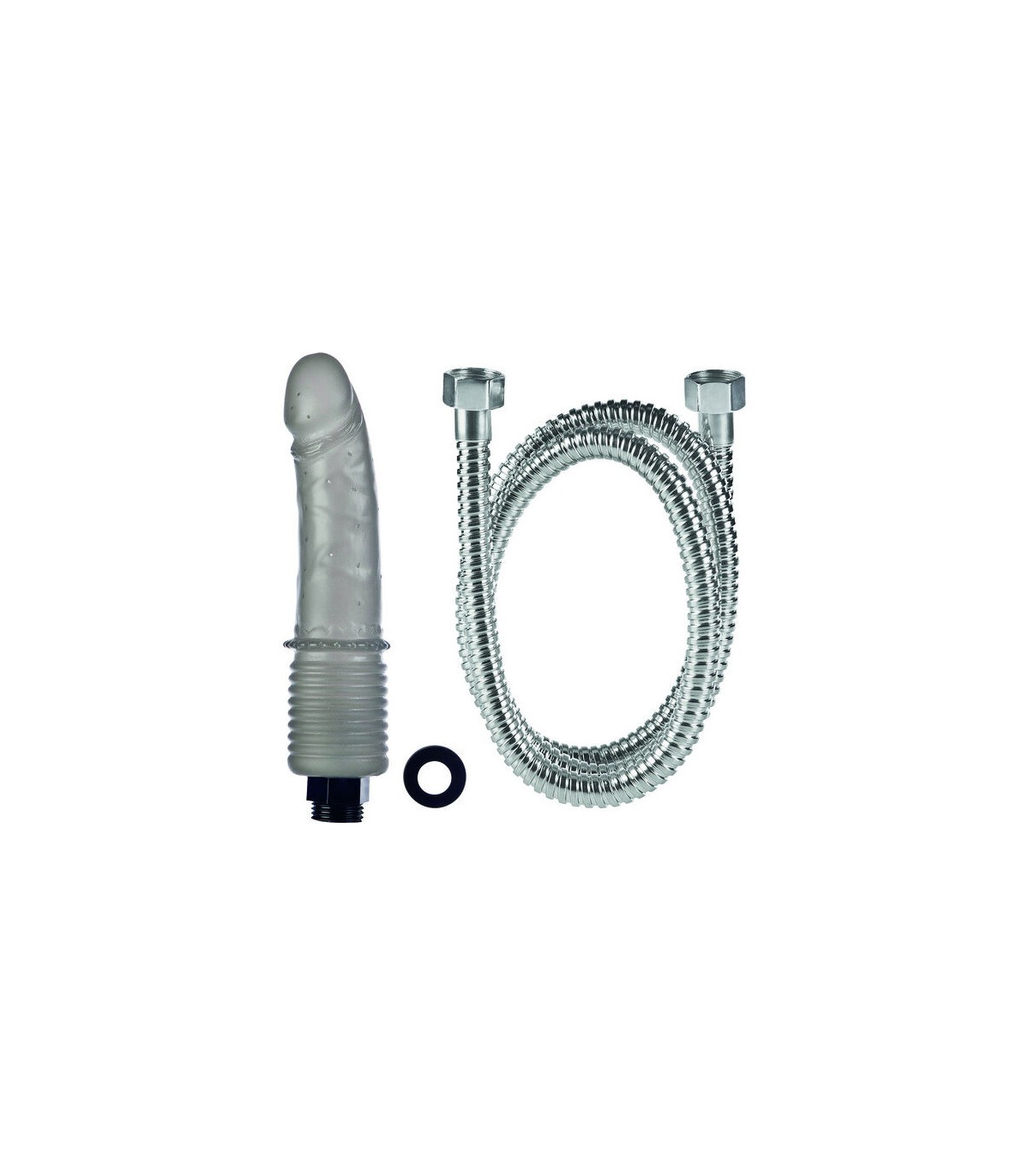 Dildo limpiador para la ducha con forma de pene, fabricado de gelatina, con decenas de pequeños orificios por donde sale el agua a presión.