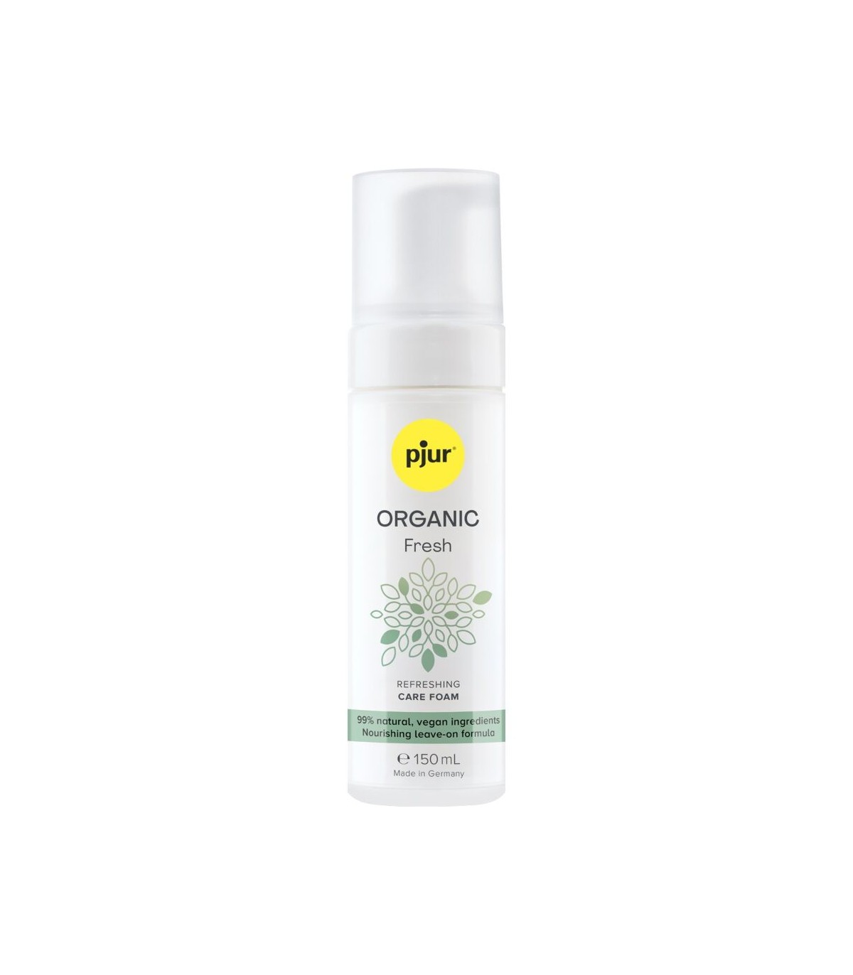 ESPUMA REFRESCANTE - Sentirse fresca es muy fácil: pjur ORGANIC Fresh convierte cualquier pañuelo de papel en una toallita limpiadora suave y húmeda al instante, para que puedas limpiar, cuidar y refrescar tu piel sin necesidad de aclarado. La espuma refrescante sin perfume es ideal para el cuidado diario y la frescura de la zona íntima externa, dejándote una sensación duradera de limpieza siempre que la necesites.