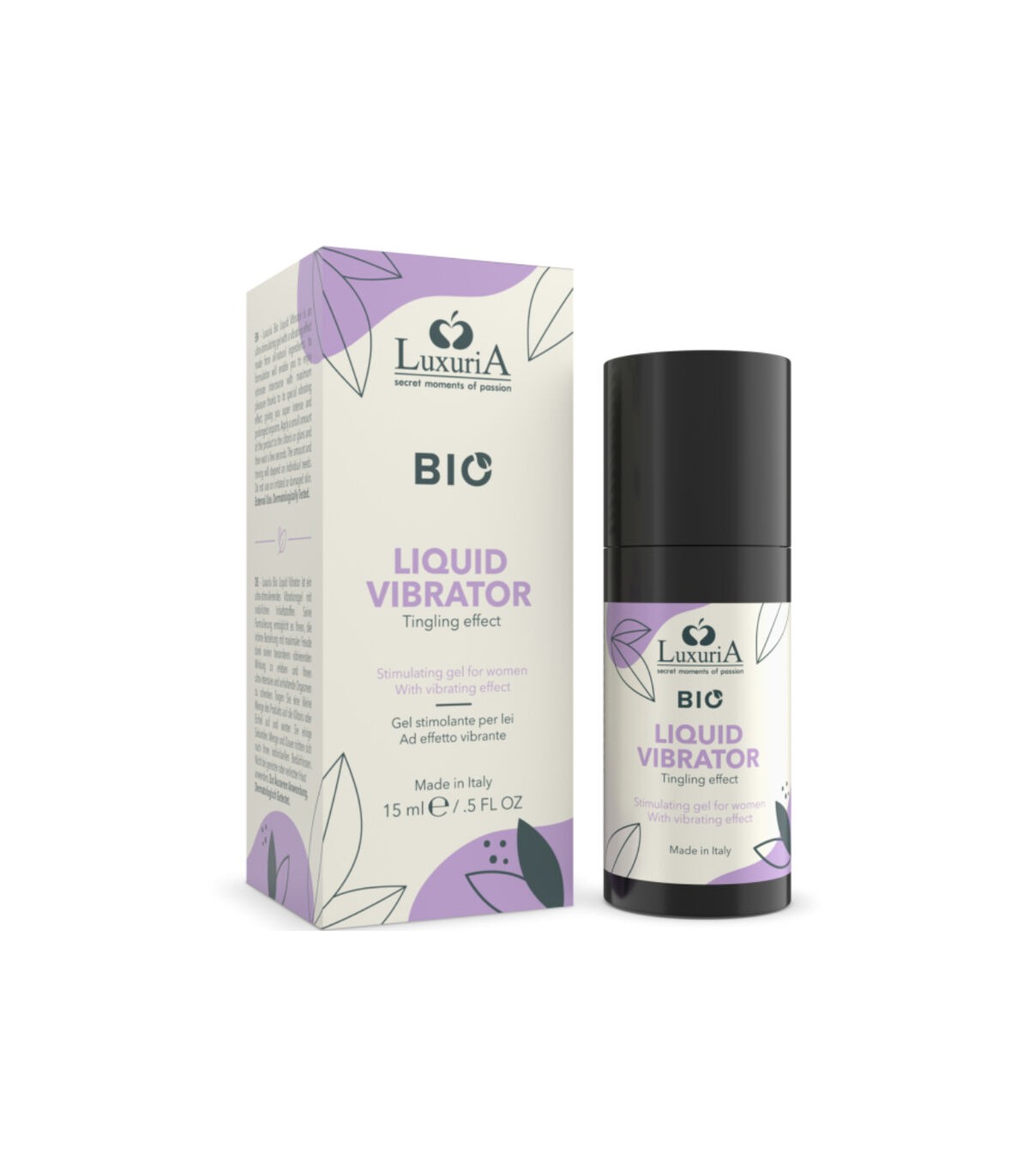 Luxuria Bio Liquid Vibrator es un gel ultraestimulante con efecto vibrador formulado con ingredientes completamente naturales. Su innovadora fórmula totalmente ecológica emplea extractos de plantas para proporcionar a tu zona íntima un efecto electrizante que aumenta la excitación y te proporciona orgasmos muy intensos y prolongados. Ideal para proporcionar una estimulación intensa y potenciar el placer.