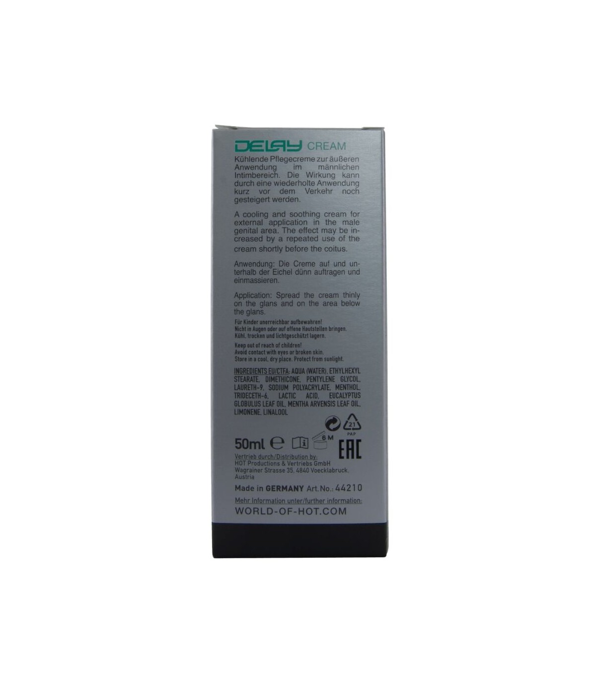Esta es una crema retardante para hombres absolutamente excepcional. La concentración especial y elevada de extractos naturales refrescantes y calmantes le brinda una sensación completamente nueva y lo fortalece al mismo tiempo.