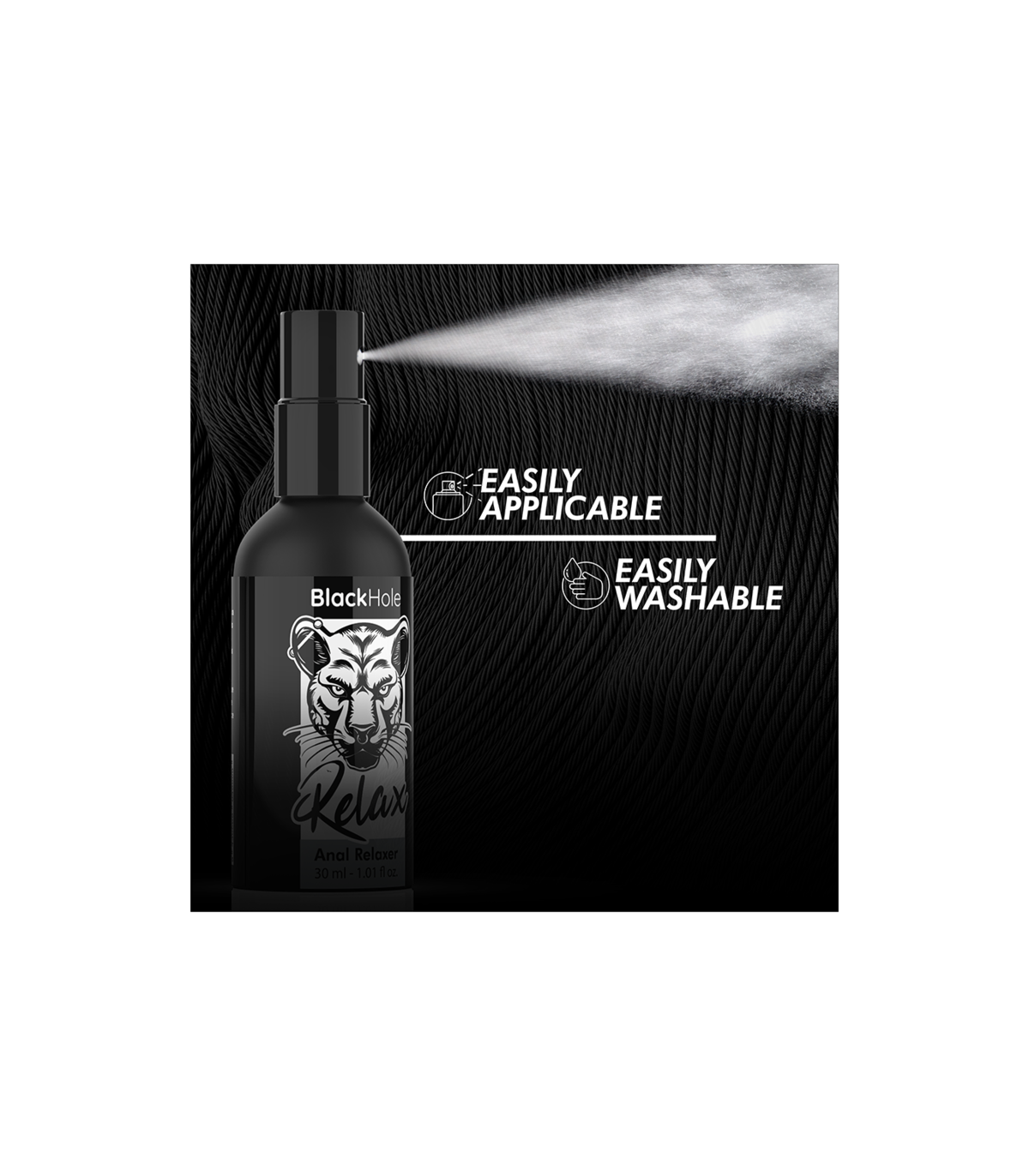 ppEl spray relajante anal de la marca strongBLACK HOLE strong es un innovador spray intimo disenado para proporcionar una experiencia mas comoda y placentera durante las relaciones anales Este producto ha sido formulado cuidadosamente para ofrecer una relajacion efectiva facilitando la dilatacion y aumentando la comodidad todo ello con una aplicacion facil y una formula segura para el cuerpo pp ppustrongCARACTERISTICAS DEL SPRAY RELAJANTE ANAL DE BLACK HOLE pullistrongRelajante anal strong Formulado para relajar los musculos de la zona anal este spray facilita la comodidad y reduce la tension proporcionando una experiencia mas placentera y libre de molestias lilistrongFacilmente aplicable strong El diseno en spray permite una aplicacion rapida y sencilla asegurando que el producto se distribuya de manera uniforme y eficiente en la zona deseada lilistrongFacilmente lavable strong Formulado para ser facilmente lavable este spray se elimina con facilidad tras su uso asegurando una higiene optima y sin dejar residuos lilistrongDuracion extra strong Ofrece una duracion prolongada manteniendo sus efectos relajantes durante todo el tiempo que necesites sin necesidad de reaplicaciones constantes lilistrongDilatacion extra strong Ademas de relajar este spray facilita una dilatacion extra mejorando la comodidad y haciendo que la experiencia sea mas agradable y placentera lilistrongExtra resbaladizo strong Su formula proporciona una textura extra resbaladiza mejorando la lubricacion y reduciendo la friccion para una experiencia mas suave y placentera lilistrongSpray a base de agua producto seguro para el cuerpo strong Hecho a base de agua este spray es seguro para el cuerpo minimizando el riesgo de irritaciones y reacciones adversas y es compatible con preservativos y juguetes intimos lilistrongFormato de 30 ml Seguro para viajar en avion strong Con un envase compacto de 30 ml es perfecto para llevarlo contigo en tus viajes incluso en avion Su tamano de viaje asegura que puedas disfrutar de sus beneficios en cualquier momento y lugar sin preocuparte por las restricciones de liquidospEl spray relajante anal de strongBLACK HOLE strong es el complemento ideal para quienes buscan anadir un toque de relajacion y confort a sus momentos intimos Con su formula innovadora y caracteristicas practicas este spray promete convertir cada uso en una experiencia unica y profundamente satisfactoria mejorando la calidad de tus relaciones y aumentando el placer mutuo pp ppustrongBLACK HOLE ppFabricamos en base a la experiencia y lo importante que es probar cosas nuevas y ampliar sus horizontes sexuales El eterno tema tabu del sexo anal es ahora socialmente aceptable y se practica de forma normal en millones de personas Este spray se desarrollo para que le resulte mas facil comenzar con el coito anal ppstrongBLACK HOLE strong es una marca innovadora y lider en la industria de productos intimos dedicada a proporcionar experiencias de placer y confort a traves de sus productos de alta calidad Con un enfoque en la satisfaccion del cliente strongBLACK HOLE strong se especializa en crear soluciones que mejoren la intimidad y el bienestar personal ppstrongBLACK HOLE strong es una marca que combina innovacion calidad y seguridad para ofrecer productos intimos que enriquecen la vida de sus clientes Con un enfoque en la creacion de experiencias placenteras y comodas strongBLACK HOLE strong se ha establecido como un lider confiable y respetado en el mercado de productos intimos pp p p