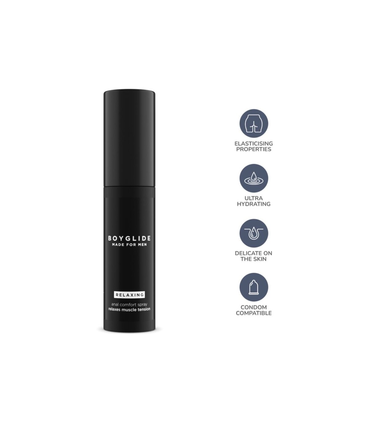 Boyglide spray relajante anal es una loción con propiedades súper hidratantes y elastizantes, relaja la tensión muscular de la parte intima, atenúa su contracción y garantiza así el máximo placer.