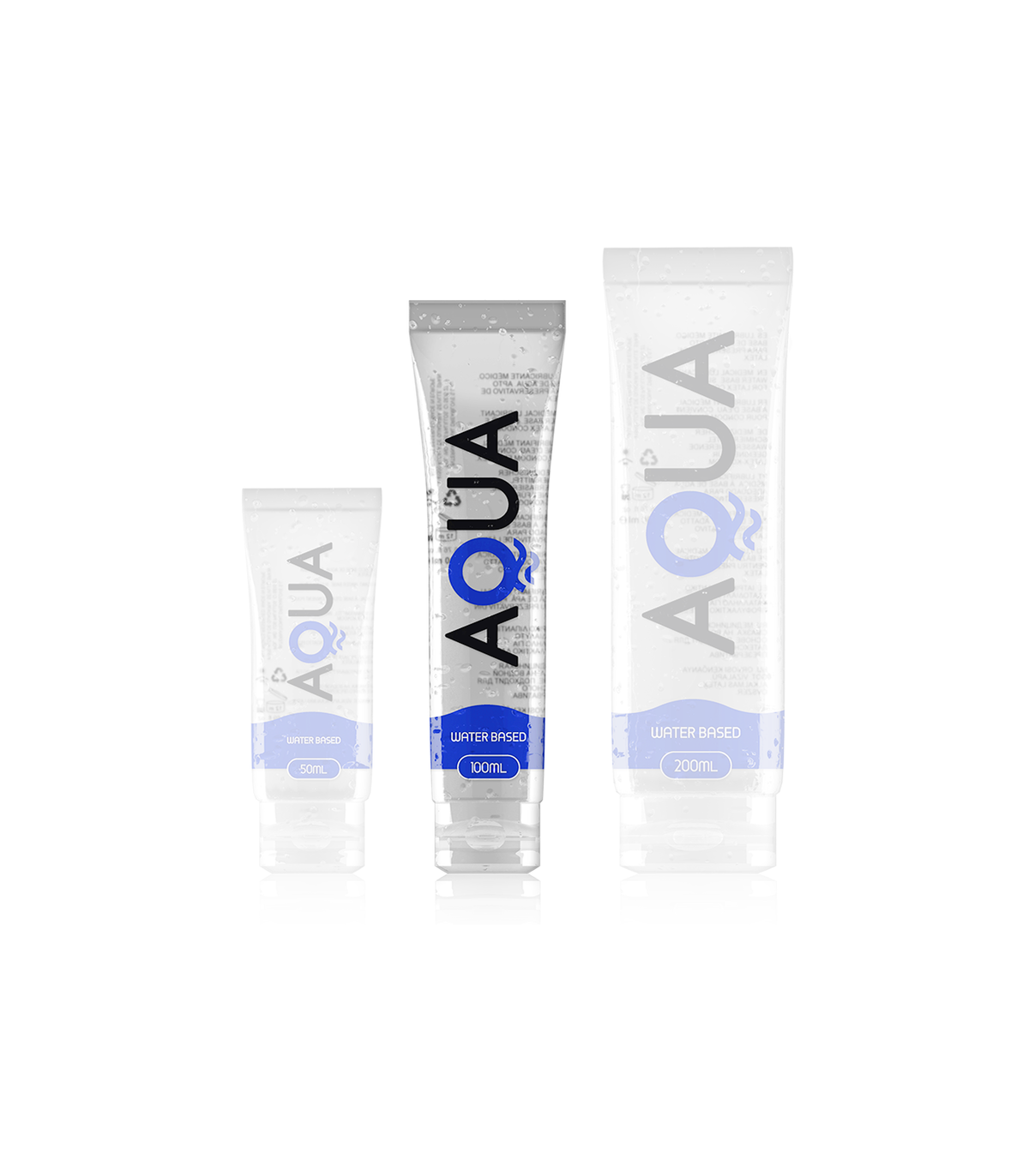 AQUA ® también es excelente para usar con preservativos  o simplemente piel con piel. A diferencia de muchos otros lubricantes a base de agua, AQUA ®   no deja residuos. Además, su transparente botella se ve genial en tu mesita de noche.