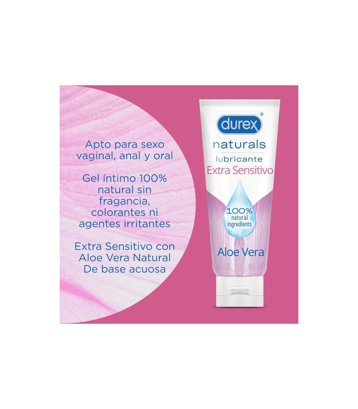 Durex Naturals Extra Sensitivo, es un lubricante extra sensitivo hecho con ingredientes 100% naturales y Aloe Vera natural que aporta suavidad y ayuda a sentir el sexo suave de forma natural. Este lubricante íntimo de Durex aporta los siguientes beneficios: