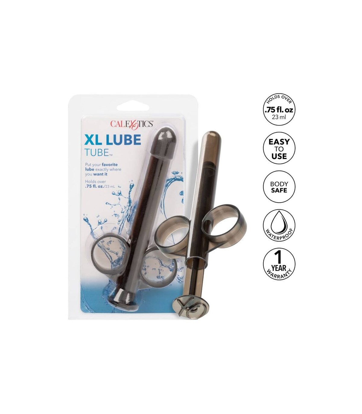 Reutilizable, recargable y fácil de limpiar, el tubo de lubricante XL es un tubo de dispensación de lubricante que le permite lubricar con precisión punta y tiene hasta 0.75 flores de lubricante. Para entregar una deliciosa lubricación a la mancha correcta, el tubo de lubricante XL tiene un eje delgado, punta redondeada y cuerpo sin costuras. El tubo delgado está equipado con dos bucles de los dedos y un émbolo fácil de usar que facilita el control del flujo de lubricante. Simplemente llene el tubo con el líquido o lubricante elegido y use la punta delgada para entregar la dosis perfecta a la mancha correcta cada vez. Este tubo es fácil de usar y fácil de limpiar. Antes y después de cada uso, lave el tubo interna y externamente con agua tibia y jabón, luego desinfecte con el limpiador de juguetes universal .