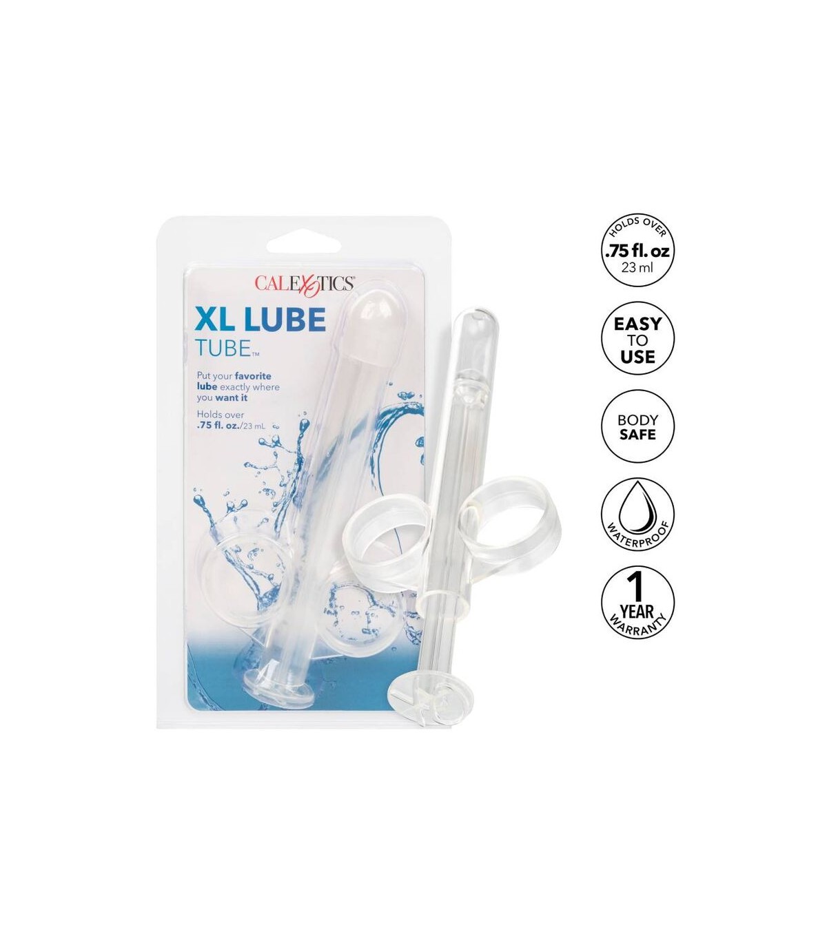 Reutilizable, recargable y fácil de limpiar, el tubo de lubricante XL es un tubo de dispensación de lubricante que le permite lubricar con precisión punta y tiene hasta 0.75 flores de lubricante. Para entregar una deliciosa lubricación a la mancha correcta, el tubo de lubricante XL tiene un eje delgado, punta redondeada y cuerpo sin costuras. El tubo delgado está equipado con dos bucles de los dedos y un émbolo fácil de usar que facilita el control del flujo de lubricante. Simplemente llene el tubo con el líquido o lubricante elegido y use la punta delgada para entregar la dosis perfecta a la mancha correcta cada vez. Este tubo es fácil de usar y fácil de limpiar. Antes y después de cada uso, lave el tubo interna y externamente con agua tibia y jabón, luego desinfecte con el limpiador de juguetes universal .