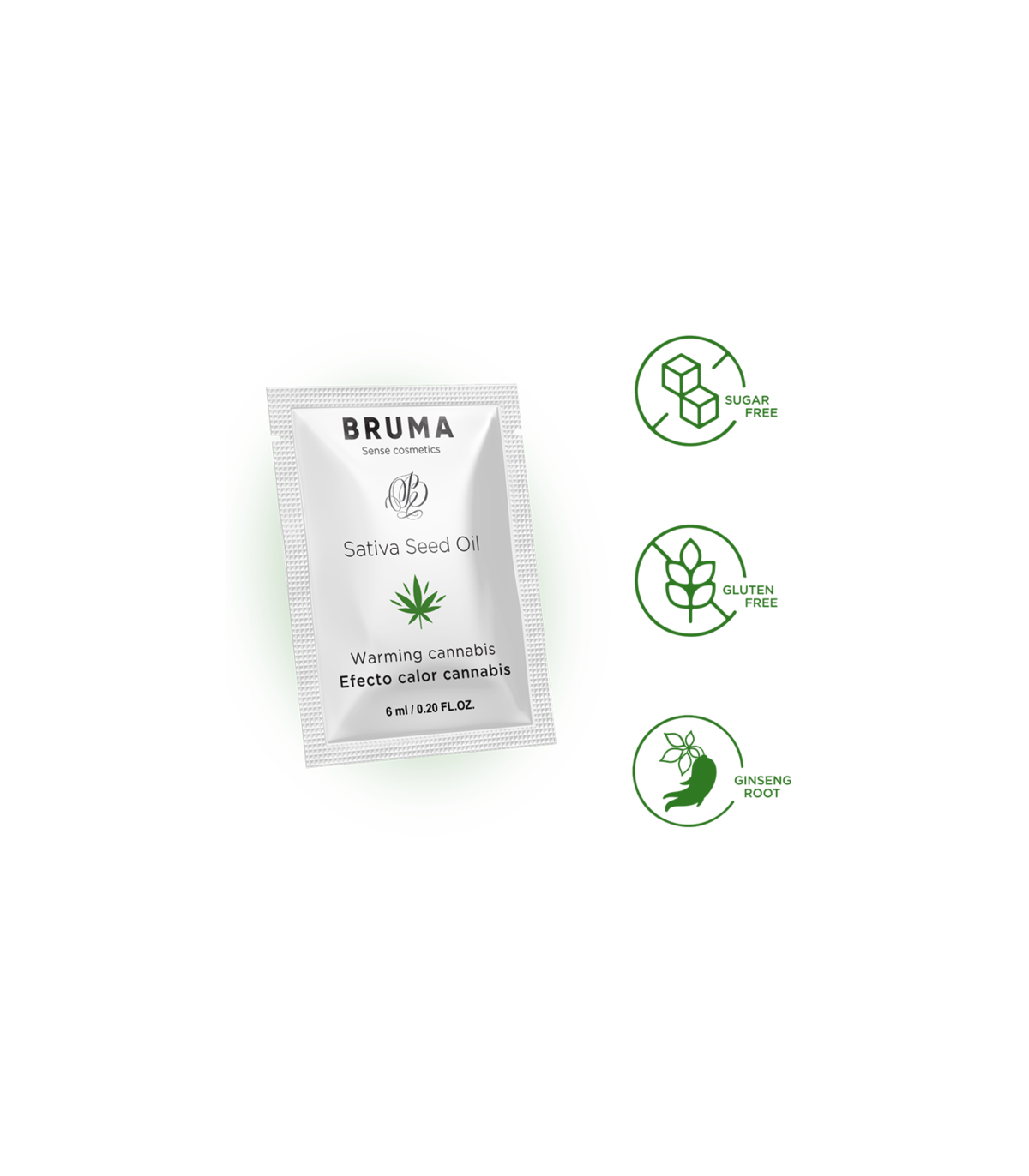 El gel deslizante con aceite de semilla de efecto calor y sabor a cannabis de 6 ML de la marca BRUMA es una verdadera innovación en el mundo de los productos para adultos. Diseñado para amplificar tus momentos íntimos con una combinación única de ingredientes, este gel ofrece una experiencia sensual y emocionante que desafía los límites convencionales.