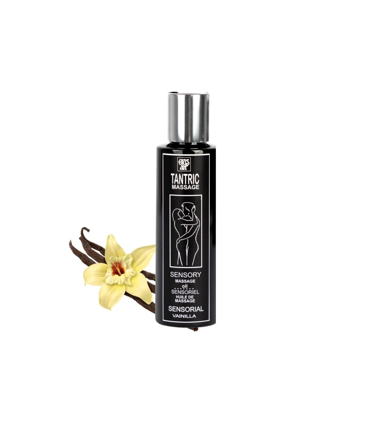 El aceite tántrico con aroma de vainilla es una combinación de aceites vegetales: Glycine soja, Prunus amygdalus dulcis oil y Prunus persica kernel oil enriquecidos con Muira Puama y Epimedium.