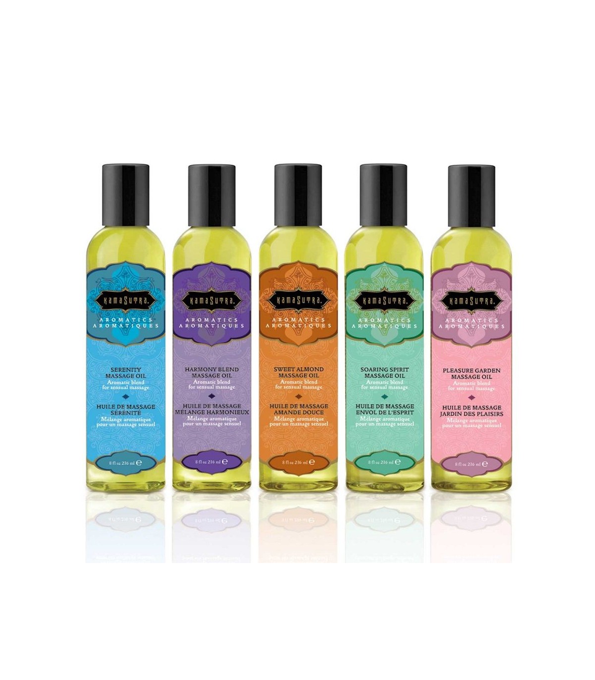 Es un aceite de masaje de la colección Kamasutra. Una combinación sensual de aceites calmantes para la relajación y la liberación del estrés.