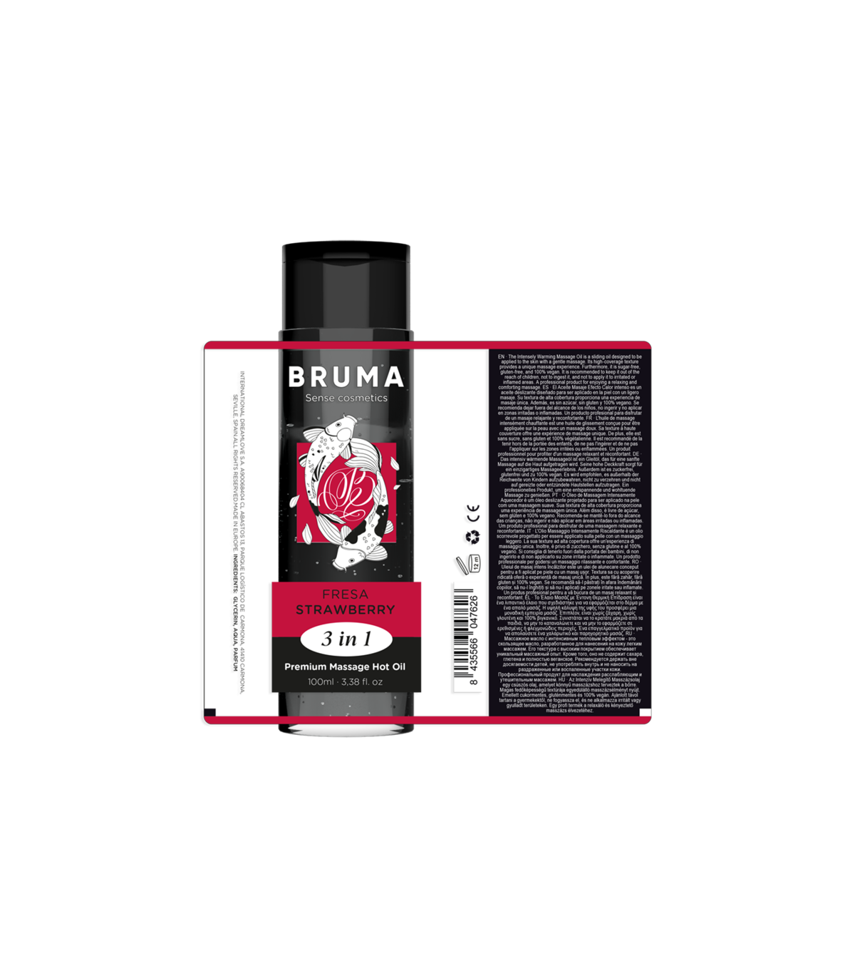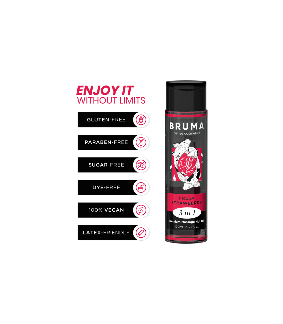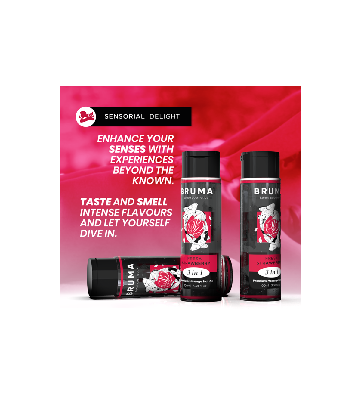 El Aceite de Masaje Premium Efecto Calor con sabor a fresa de la marca BRUMA es una auténtica joya en el mundo del bienestar y la intimidad. Este exquisito producto, presentado en un elegante envase de 100 ml, está diseñado para proporcionar una experiencia única y sensual, brindando un masaje relajante y estimulante con un toque de calidez que lo hace aún más especial. Aquí están los puntos destacados desarrollados en detalle: