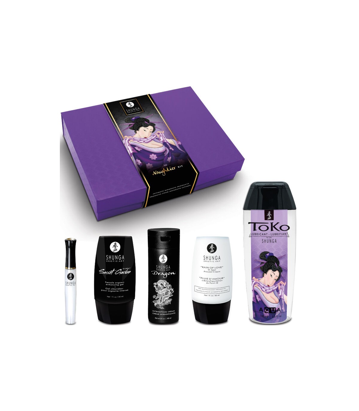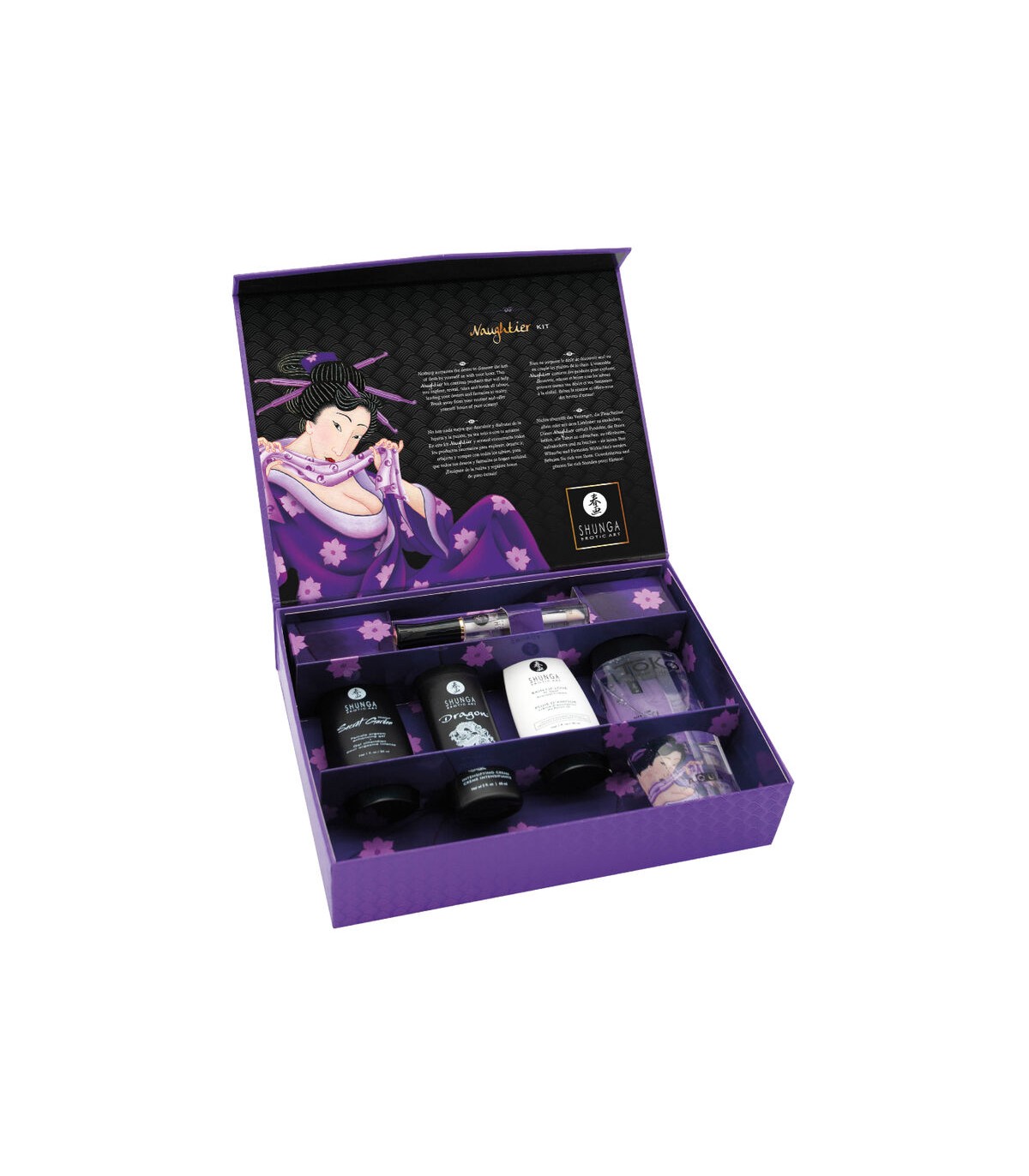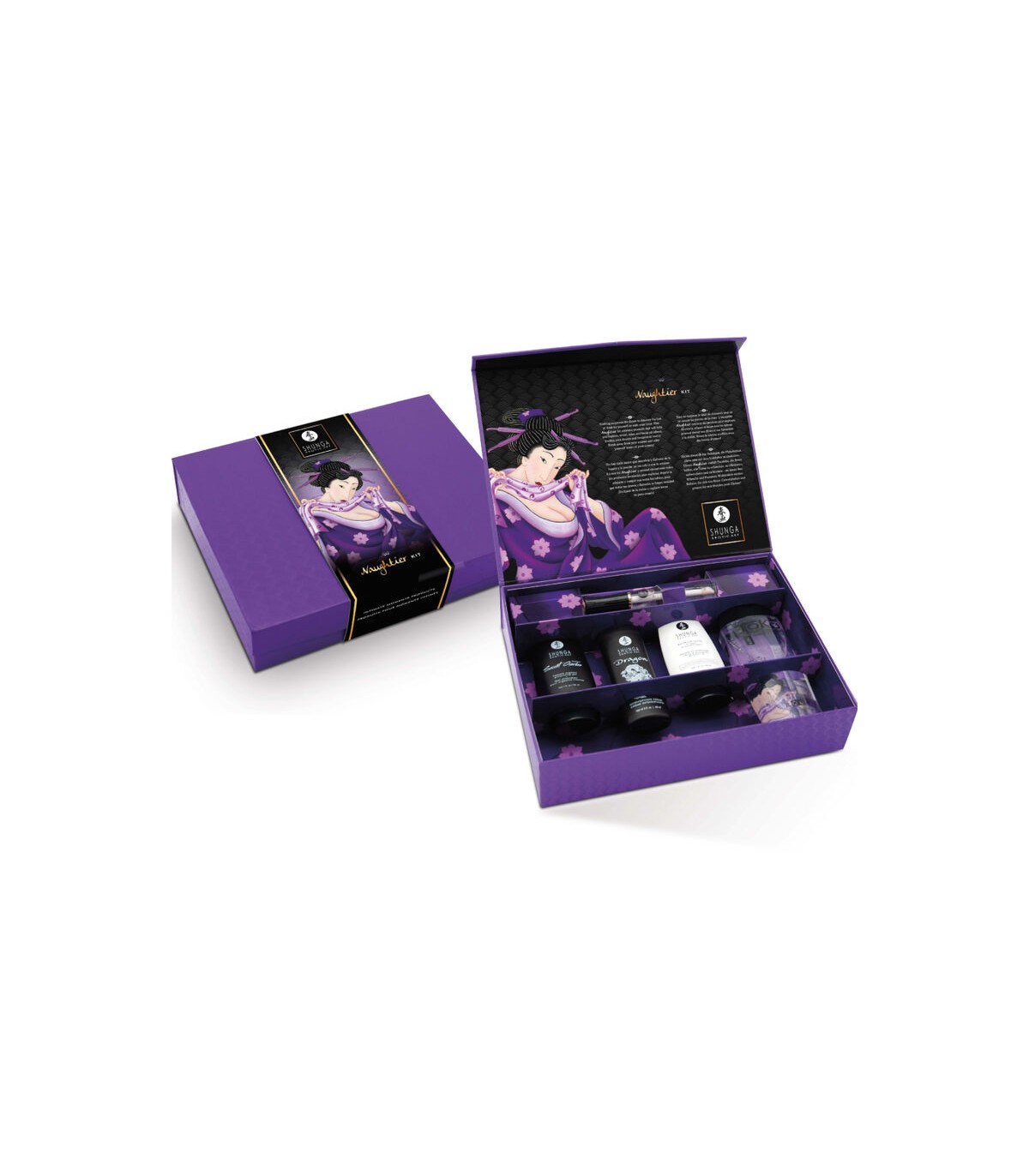 Esta colección de productos te ayudará a explorar tabúes y romperlos. Nada supera el deseo de explorar la lujuria de la carne solo o con tu amante. ¡Todo lo mejor está aquí y ahora! El Shunga Naughter Kit es el set de cosmética íntima más excitante que existe actualmente. Shunga Naughter Kit te sumerge en la atmósfera de un afrodisíaco envolvente a primera vista. En paquetes de regalo, en los que se pueden guardar pequeños detalles agradables, ¡los mejores éxitos para un placer intenso esperan a sus futuros usuarios