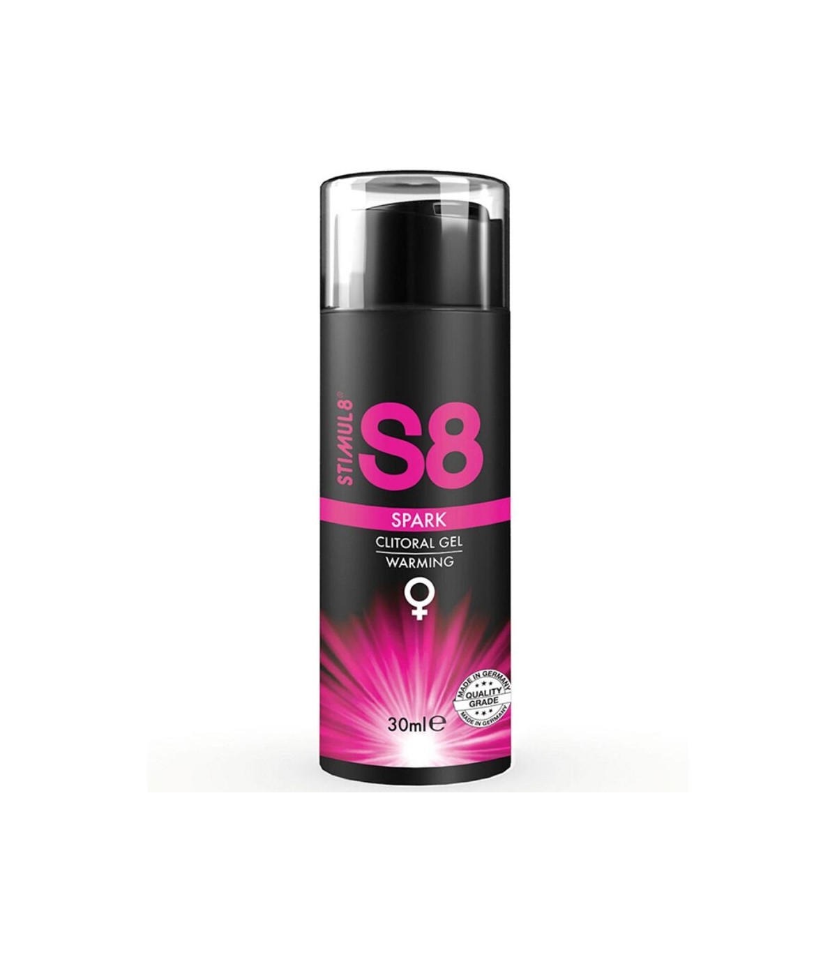 S8 Spark Gel para Clítoris: AGUA, GLICERINA, PROPILENGLICOL, ACEITE DE RICINO HIDROGENADO PEG-40, CARBÓMERO, PERFUME (FRAGANCIA), HIDROXIETILCELULOSA, TROMETANINA, METILPARABENO, ETILPARABENO, PROPILPARABENO, BUTILPARABENO, ISBUTILPARABENO, CAPSICUM FRUTESCENS RESINA, CI14720 (ROJO ALIMENTICIO 3) Gel Retardante para el Pene S8 - AGUA (AGUA, GLICERINA, PENTILENO GLICOL, LAURETH-9, CARBÓMERO, HIDRÓXIDO DE SODIO, ACEITE DE HIERBAS DE MENTHA SPICATA CRISPA)