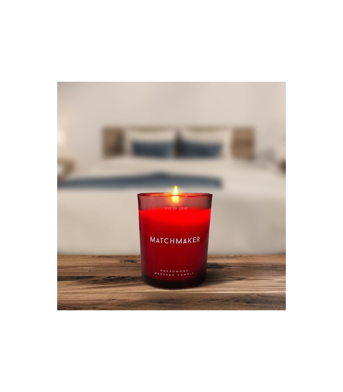 Deléitese con la máxima experiencia sensual con la vela de masaje con feromonas MATCHMAKER. Hecha con una base de manteca de karité y otros aceites naturales, esta vela de lujo 3 en 1 crea una atmósfera seductora para masajes sensuales y deja la piel suave e hidratada.