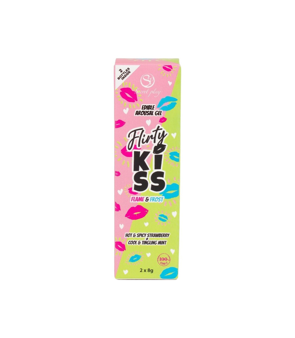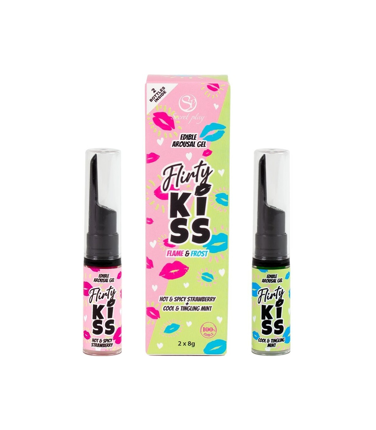 El sexo oral y los juegos son realmente excitantes, pero si les das un complemento extra pueden convertirse en tu plan favorito. Flirty Kiss está compuesto por 2 geles: 1 gel de fresa con efecto calor picante y 1 gel de menta con frío vibrante. Ambos son perfectos para utilizarse en pareja, uno notará un calor excitante con sabor a fresa y un estimulante efecto picante mientras el otro notará un efecto vibrante con sabor a menta muy refrescante. Una explosión de sensaciones para unos besos y sexo oral inolvidables.