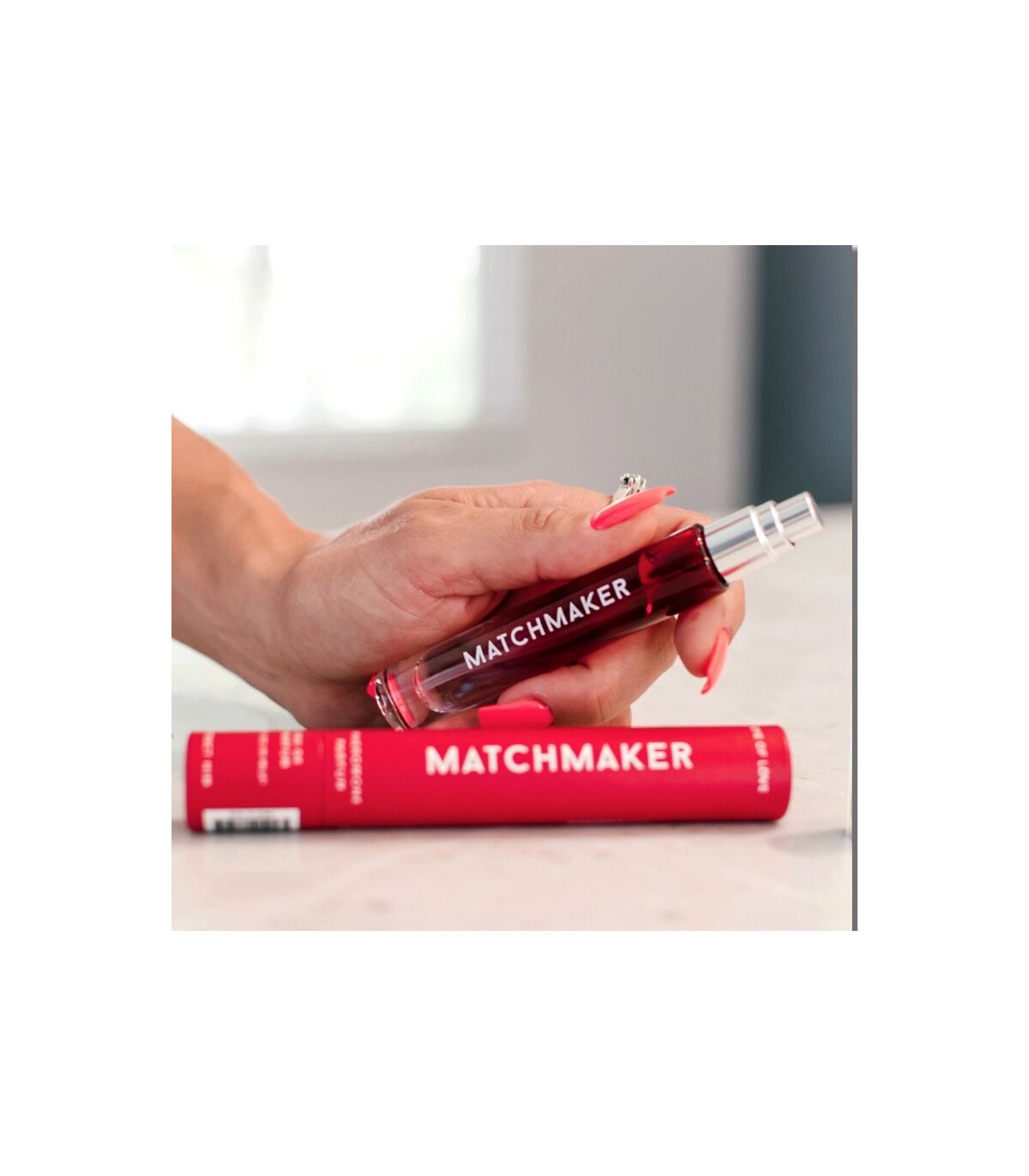 La fragancia posee una sensual mezcla de jazmín, pomelo y ámbar con un toque cítrico. Muy suave y fresco, pasión y calidez son sinónimos del perfume Matchmaker.