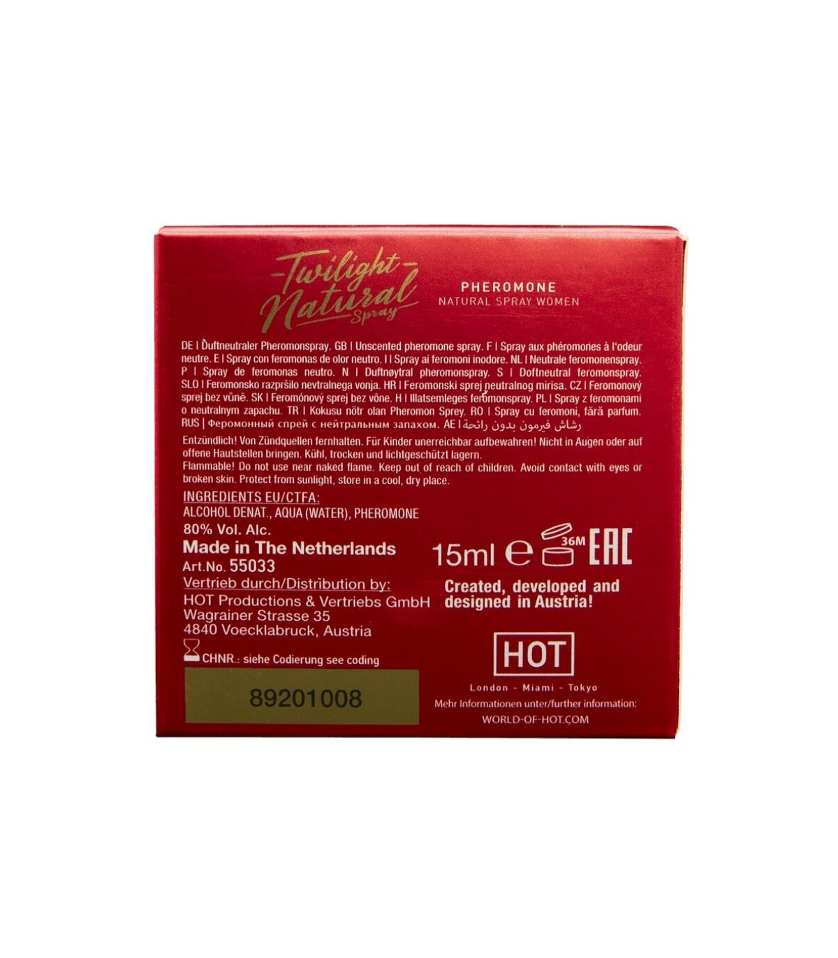 A diferencia de los perfumes tradicionales, este spray es completamente neutro e inodoro. Esta característica lo hace perfecto para aquellas mujeres que prefieren no usar fragancias adicionales o que desean aplicar sus feromonas junto con su perfume habitual sin alterar su aroma. La fórmula utiliza feromonas que actúan como señales bioquímicas naturales de atracción y comunicación.