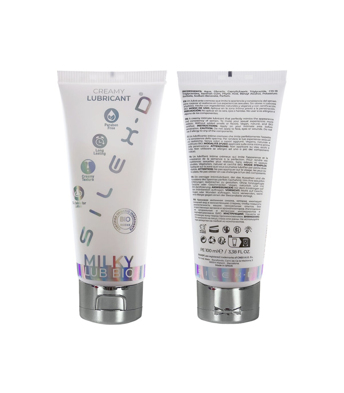 La marca Silexd presenta Milky Lub Bio, un lubricante cremoso que imita la apariencia y consistencia del semen para mejorar el realismo en tus experiencias sexuales. Sin olores ni sabores añadidos. Hecho con ingredientes naturales y veganos y con certificación BIO.