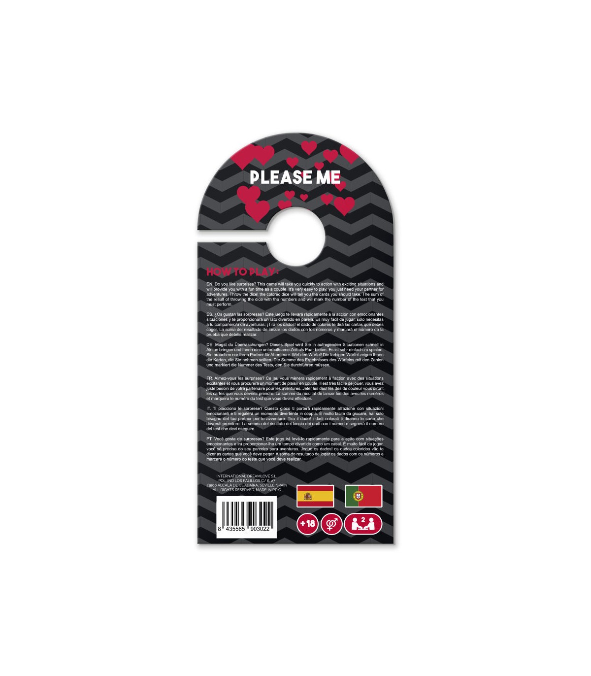 ¿Os gustan las sorpresas? Este juego te llevará rápidamente a la acción con emocionantes situaciones y te proporcionará un rato divertido en pareja. Es muy fácil de jugar, solo necesitas a tu compañero de aventuras. ¡Tira los dados! El dado de colores te dirá las cartas que debes coger. La suma de resultado de lanzar los dados con los números y marcará el numero de la prueba que debéis lanzar.