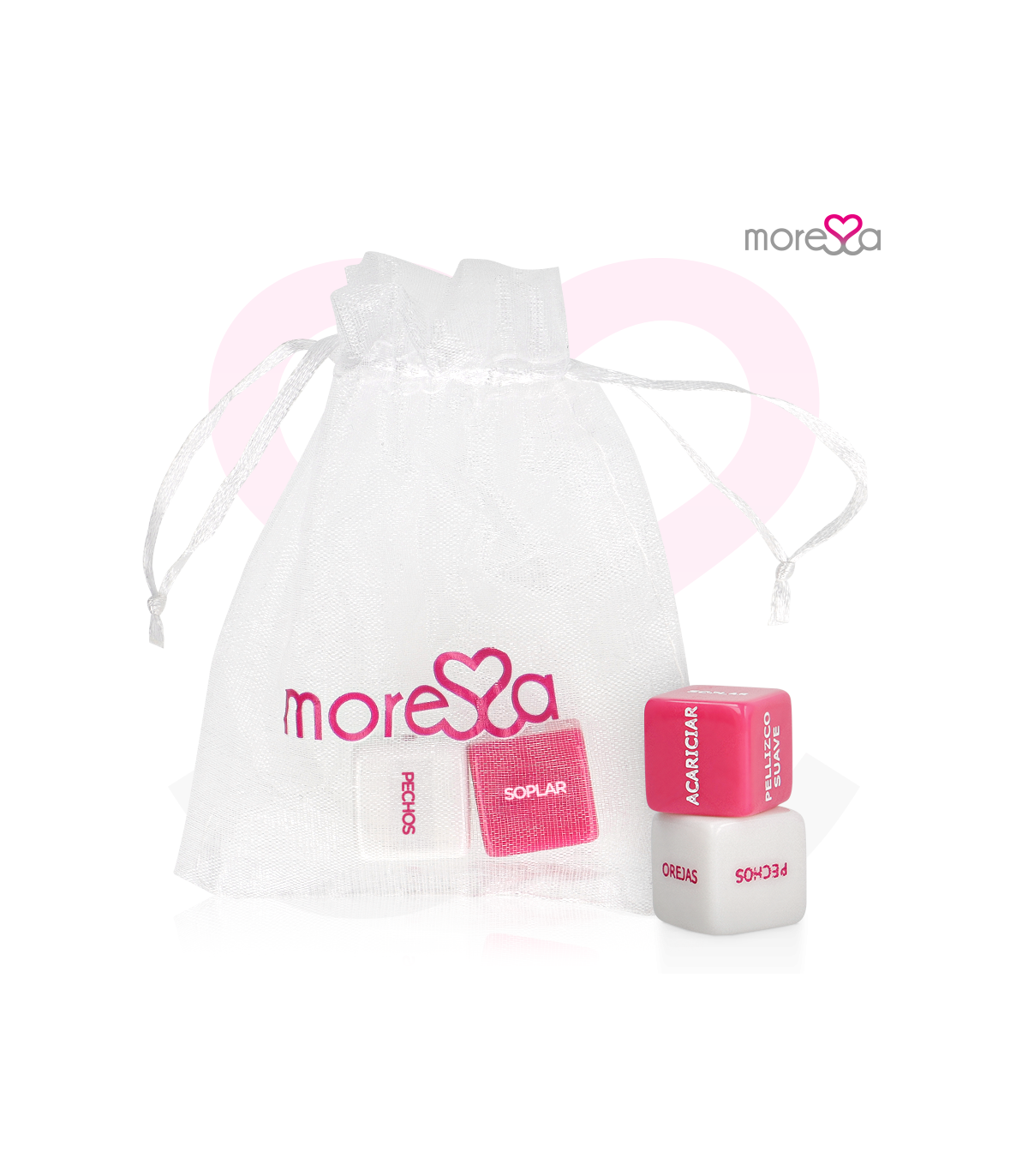 Incluye una pequeña, bolsa satén para mantener los dados eróticos seguros.