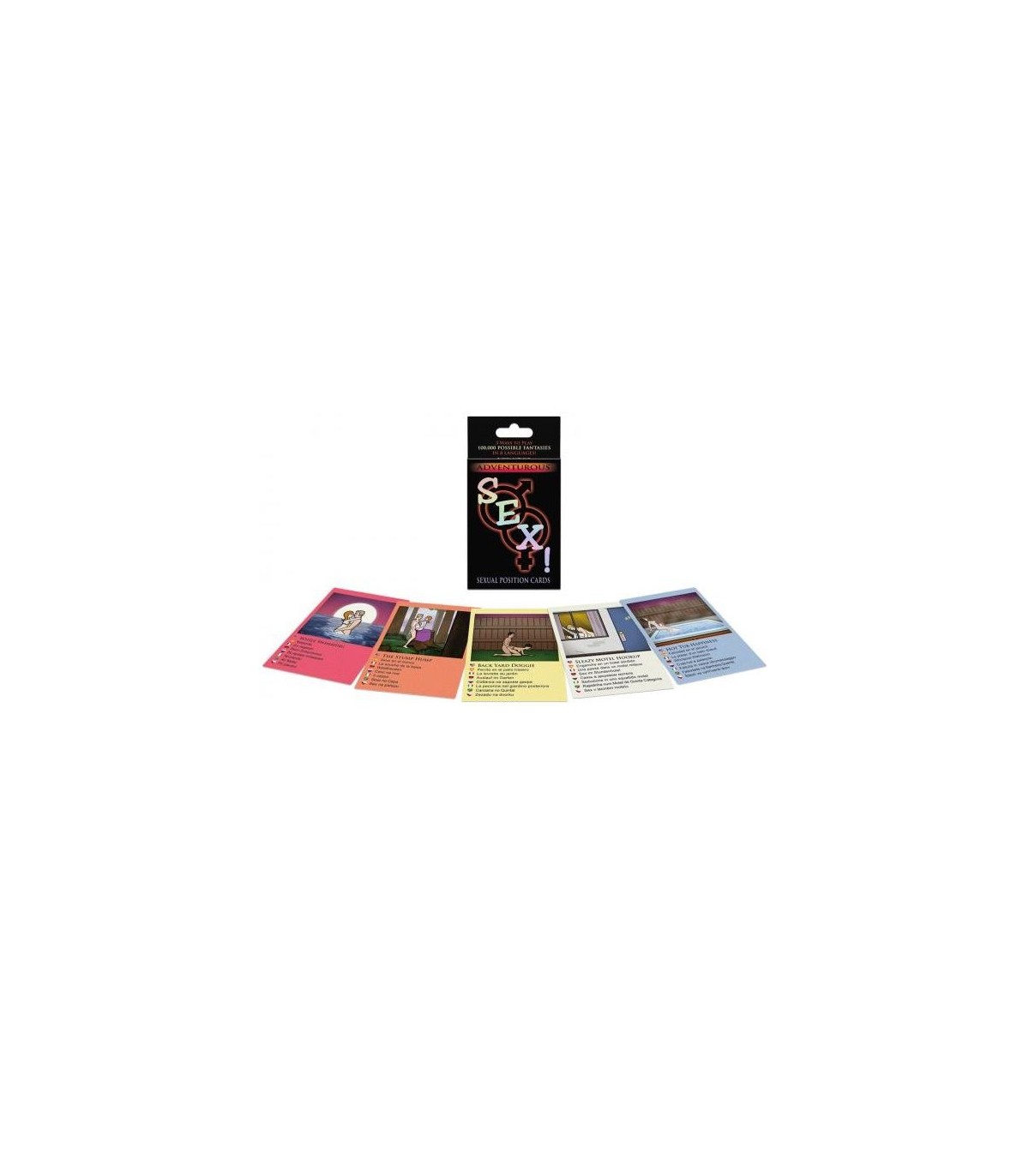 Cada carta ilustra una actividad de estímulo sexual o una posición sexual. Al jugar una de las tres cartas, usted y su pareja usarán las cartas para planear una de las 100.000 fantasías posibles de aventuras infinitas. Después de construir una fantasía, ambos la realizaran.