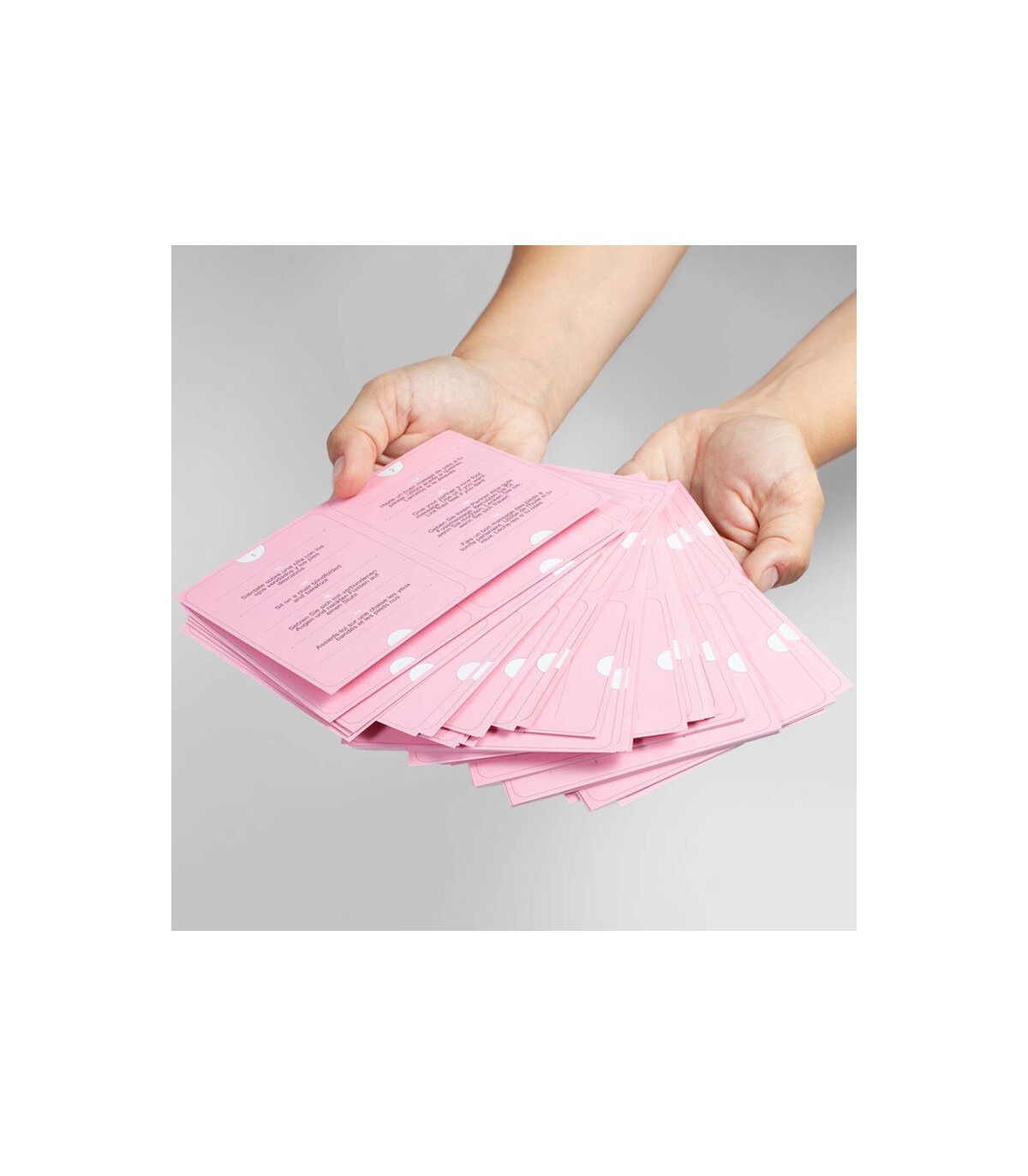 Para jugar debéis sacar una carta de la caja, veréis que cada carta está dividida en dos, cada integrante de la pareja debe tirar de cada uno de los extremos para quedarse con la mitad de la carta.