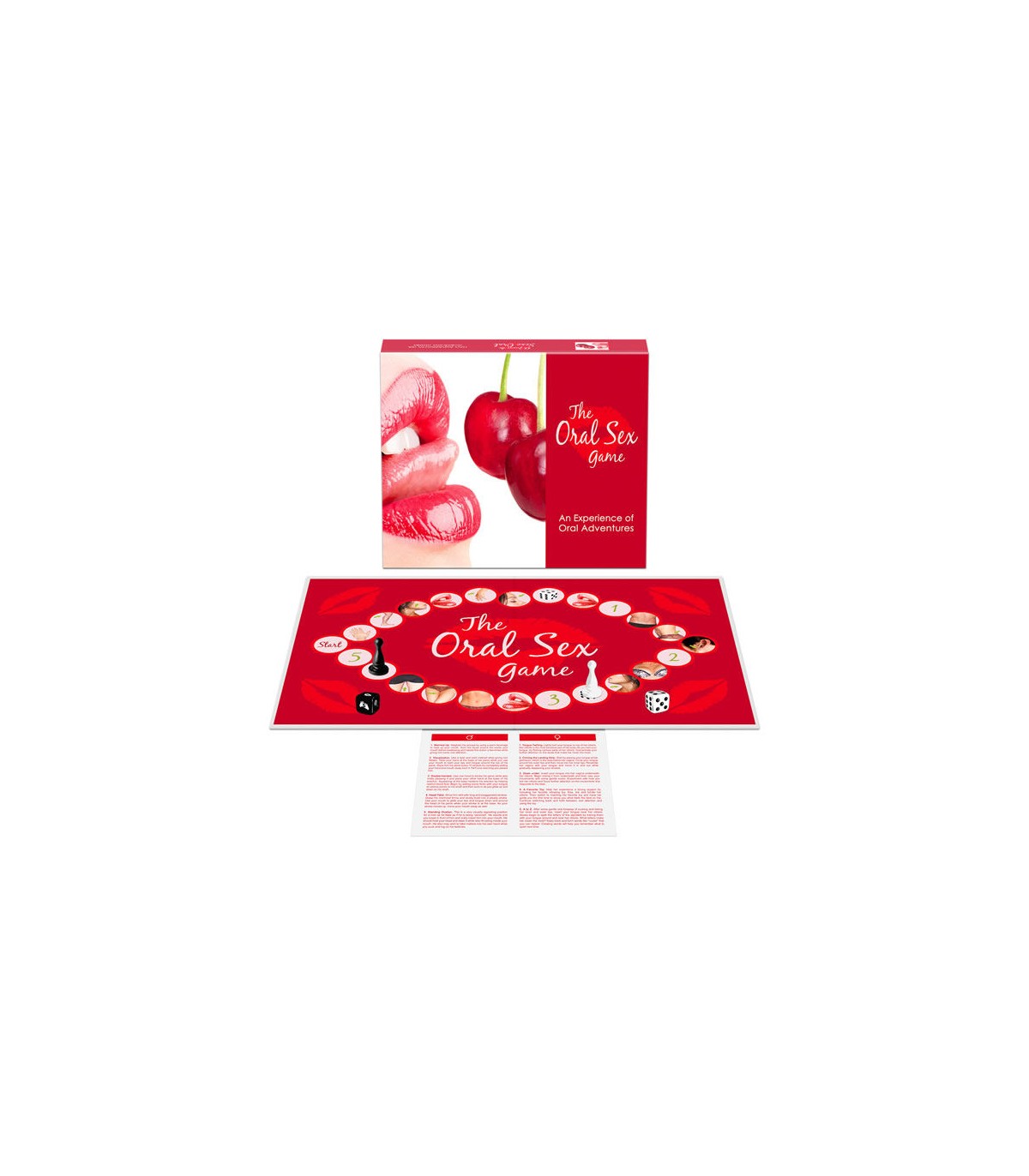 Incluye el tablero, 2 fichas de jugador, 1 dado normal, 1 dado de acciones orales, un monodosis de lubricante Wet y las instrucciones con 5 técnicas de sexo oral para él y otra 5 para ella.