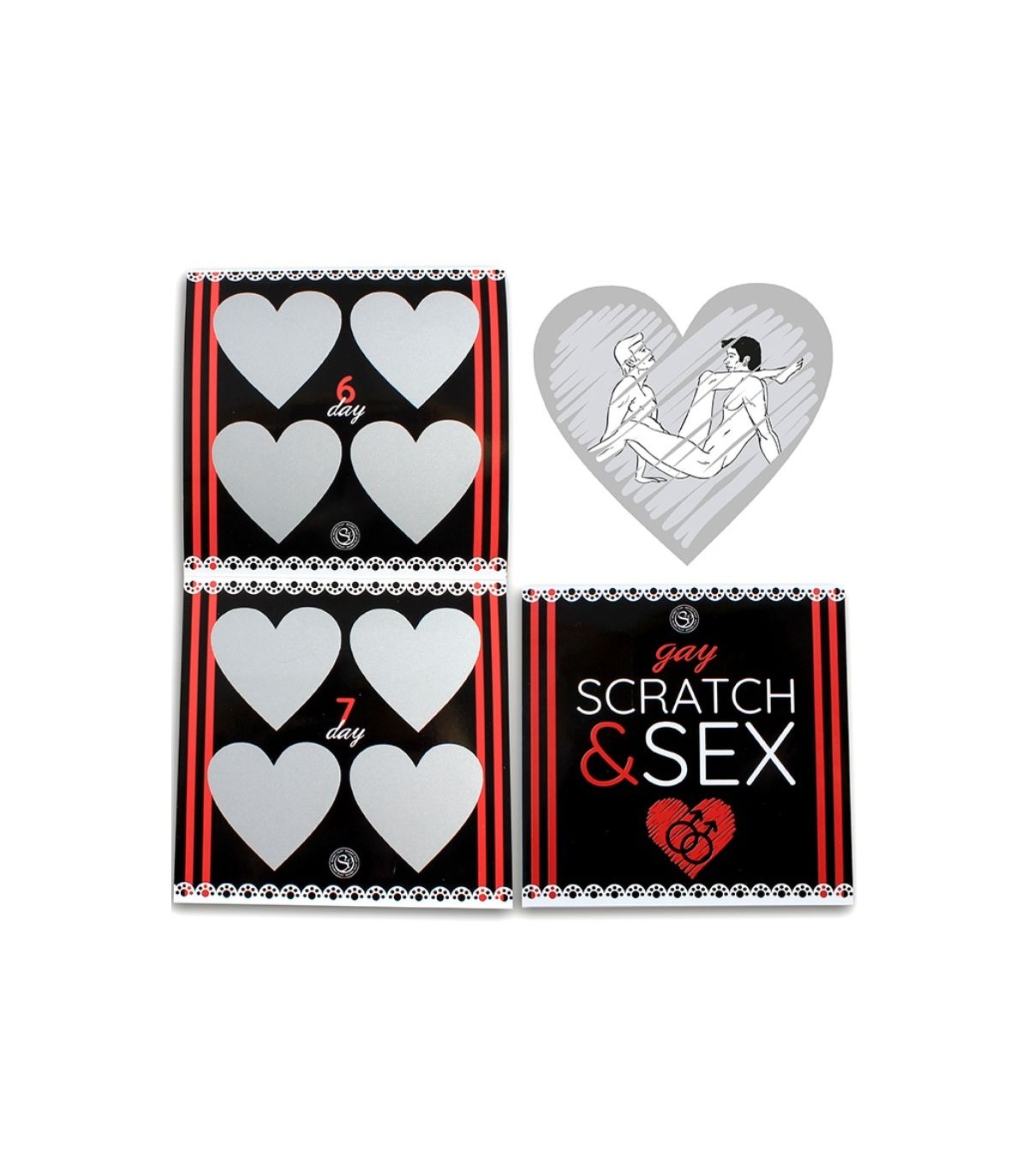 Rasca una opción cada día y si estás de suerte, descubrirás una postura nueva con la que disfrutar en pareja. Existen cuatro opciones diferentes a rascar para cada día, teniendo 7 días en total. Puedes terminar la tanda de una semana y luego volver a rascar desde el principio descubriendo las posturas restantes, permitiéndote así disfrutar de 4 semanas de juego.