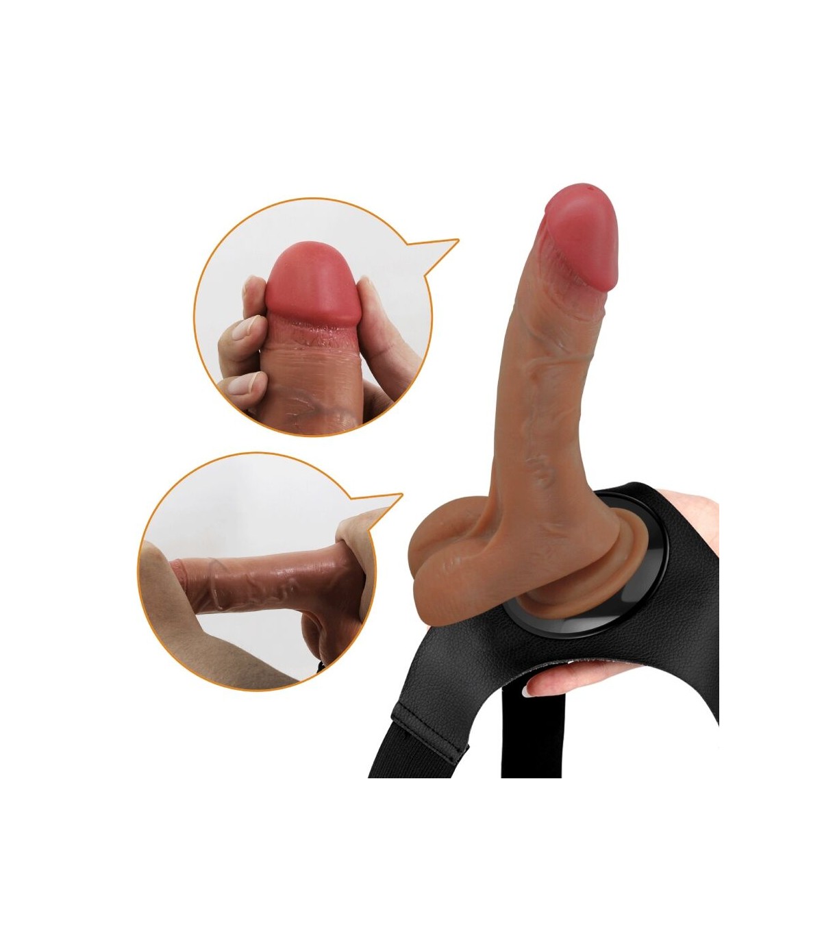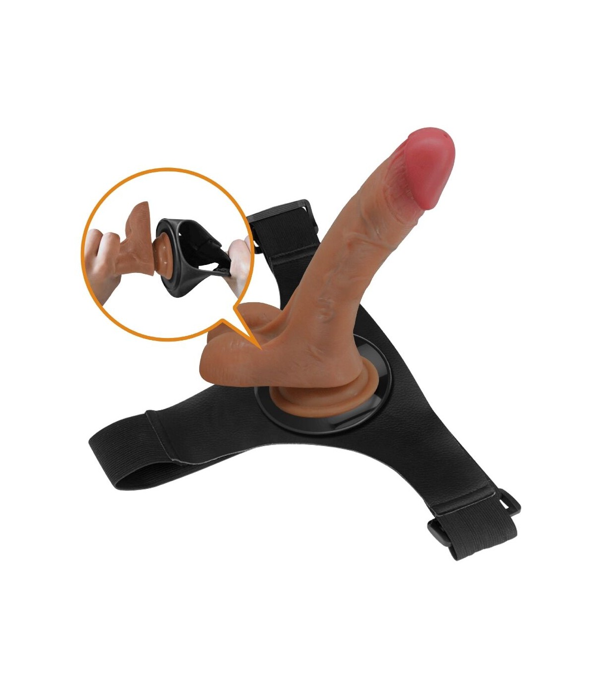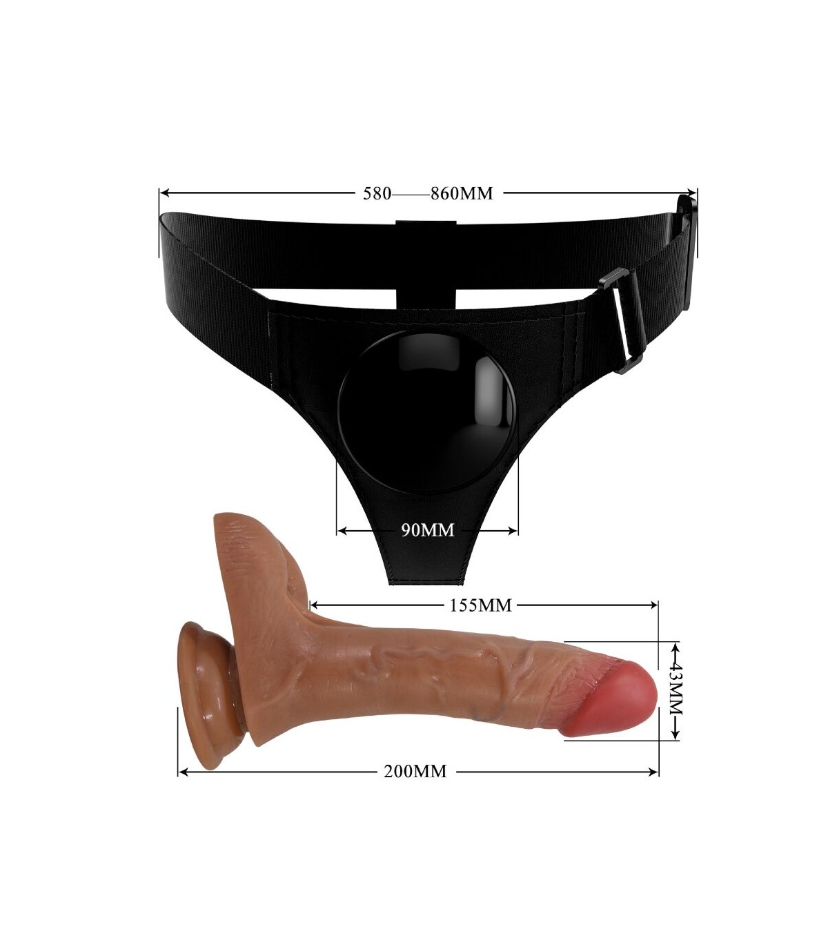 Cuenta con un eje magníficamente esculpido y cubierto de venas y una cabeza de tamaño generoso. Este consolador realista está hecho de material TPR realista. Se puede usar con o sin el arnés incluido.