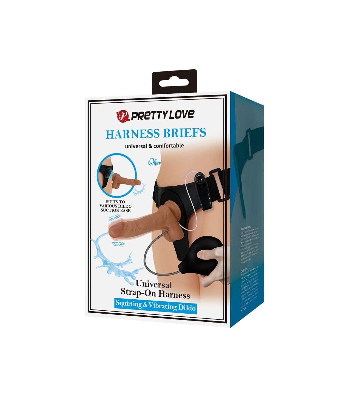 Colóquese este consolador realista con chorros y vibración para experimentar una estimulación y penetración potentes. Un consolador grande con correa que cuenta con un arnés ajustable para un ajuste firme, seguro y cómodo.