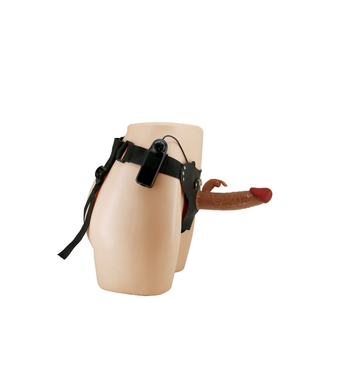 ¡Toma el control y satisface a tu pareja en la cama con el consolador de conejo vibrador con arnés y correa de PRETTYLOVE!