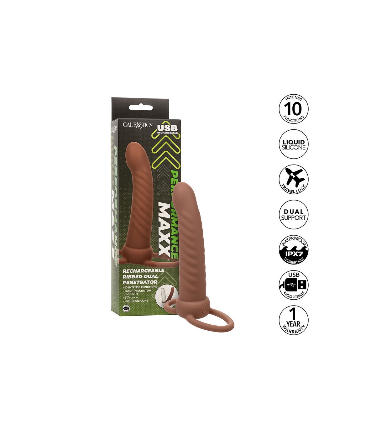 Desata tu curiosidad con Performance Maxx Rechargeable Ribbed Dual Penetrator.