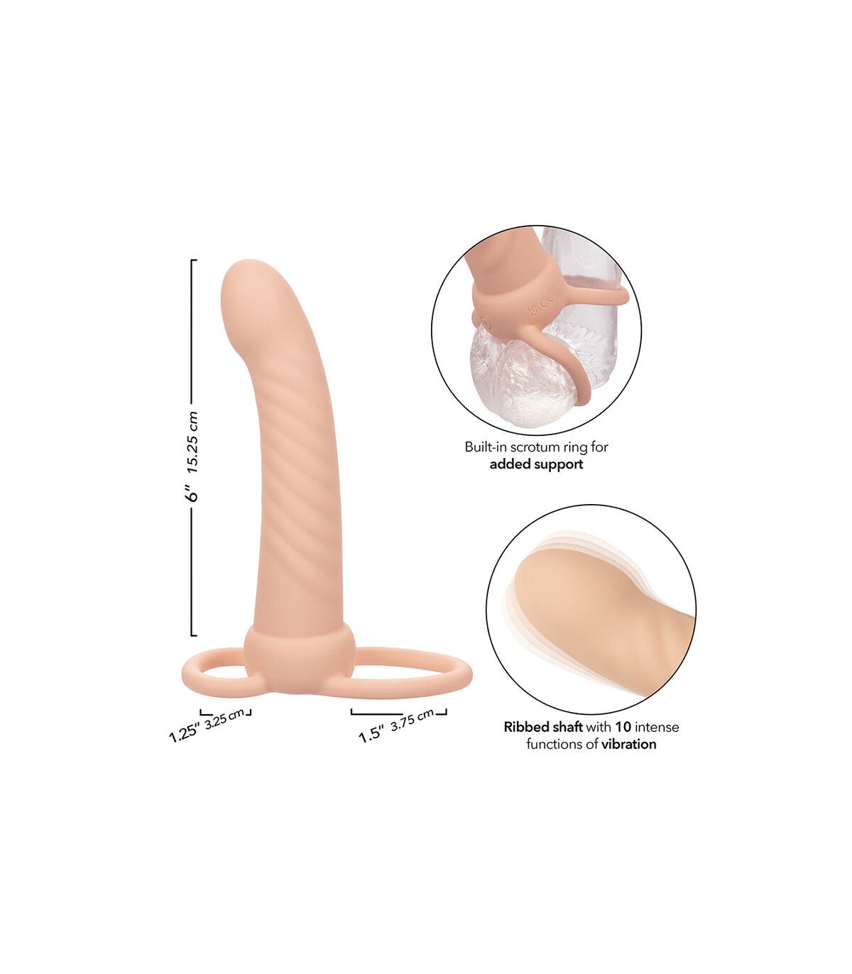 Presentamos el Performance Maxx Rechargeable Ribbed Dual Penetrator, una sonda versátil diseñada para experiencias intensas de doble penetración.