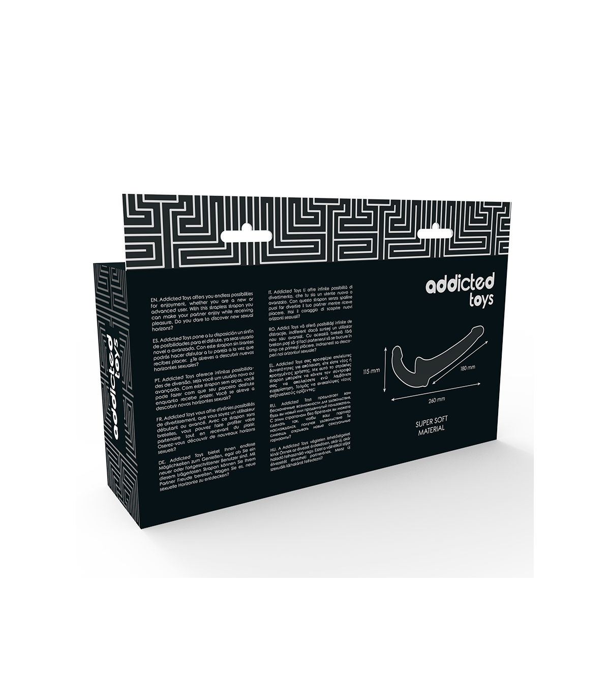 Completamente sin tirantes, se mantiene en su lugar con una sonda curvilínea, insertable y curvada, que ofrece una deliciosa estimulación del punto G para el usuario. El extremo acanalado más largo se usa para penetrar a tu pareja masculina o femenina.