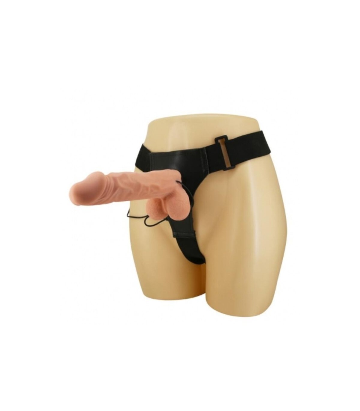 Arnés con dildo con materiales suaves y realistas, perfectos para una penetración suave y satisfactoria. El arnés es ajustable y elástico, el dildo es flexible y suave, perfecto para la penetración anal o vaginal. Cuenta con función vibración y un control remoto con cable que podrás anclar al arnés para que puedas tener las manos en otras cosas.